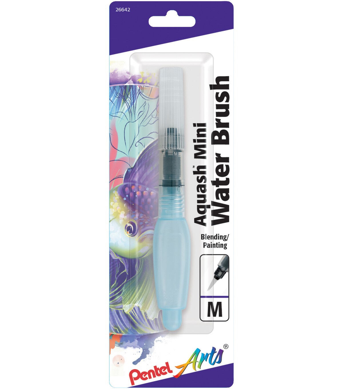 Create stunning drawings and paintings with the Pentel Arts Aquash Mini Water Brush. Simply fill the barrel with your favorite ink or water and squeeze the barrel of the brush to spread the colors uniformly. It is easy to clean and is dishwasher safe. This pack contains one 0.75 x 5-inch medium tip blending and painting water brush.