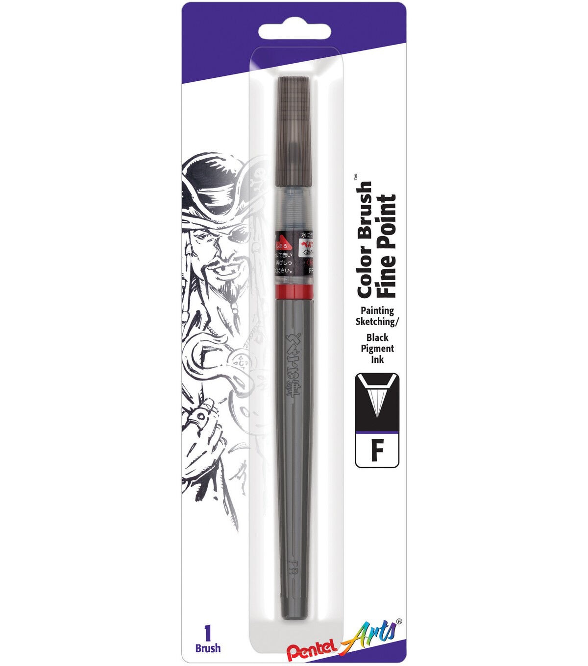 The Pentel Arts Color Brush Fine Point Tip Brush Pen with Black Pigment Ink is a versatile ink brush that is easy to switch between line and wash artwork. A durable nylon tip can flood wide strokes with solid color and then give a light touch to delicate lines. This pack contains one 7-inch long brush pen. It is acid free, and also comes in a variety of tips, each sold separately.