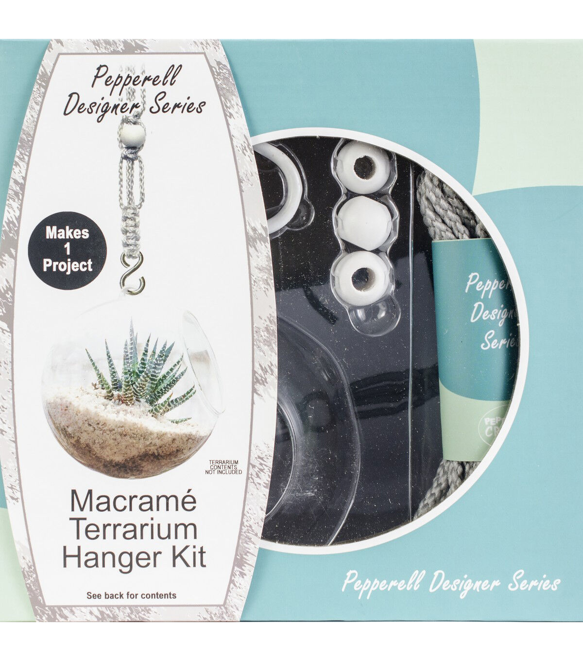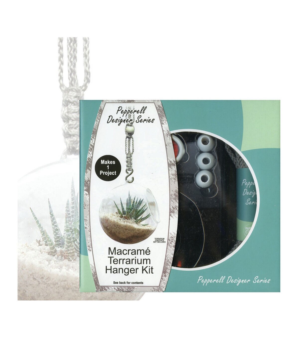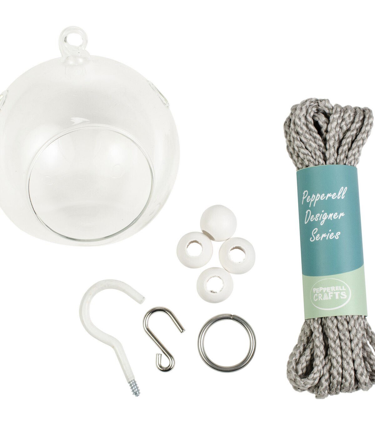 The joy of crafting is captured within the kit. As the maker you can proudly display your project because you brought it to life! All the materials and instructions are provided. Each kit comes complete (plant not included) ready to make, ready to hang! The terrarium kit contains: one glass terrarium globe, one vinyl coated ceiling hook, 15 feet (4.57 meters) of gray polypropylene cord, four wooden beads, one metal plated ring, one metal S-shaped hook and instructions. Imported.
