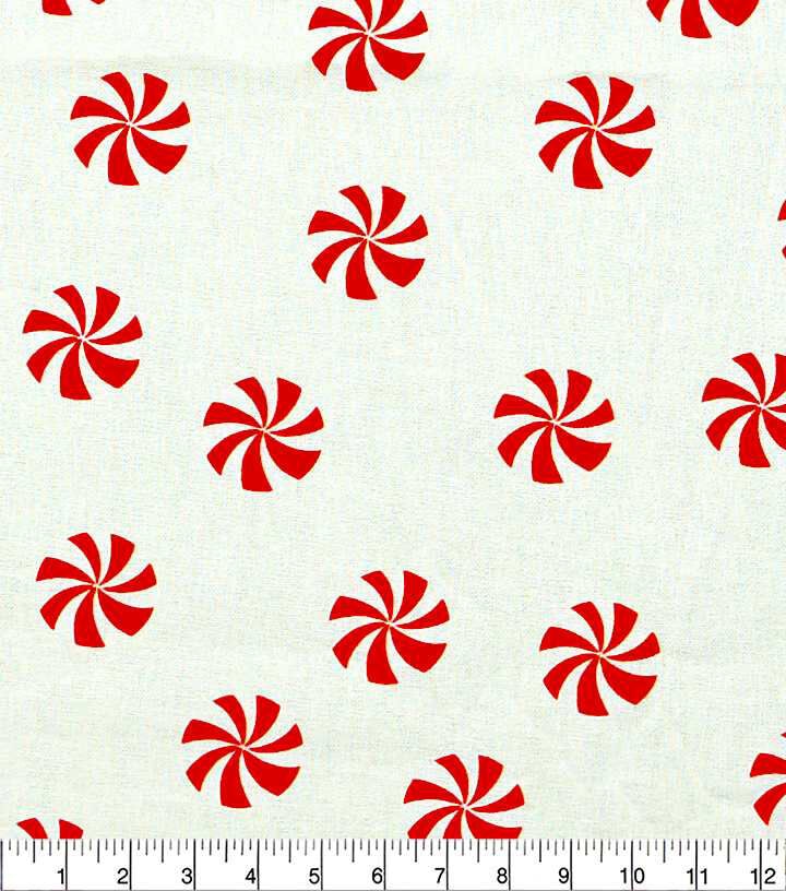 Peppermints on Marshmallow White Christmas Cotton Fabric by POP!