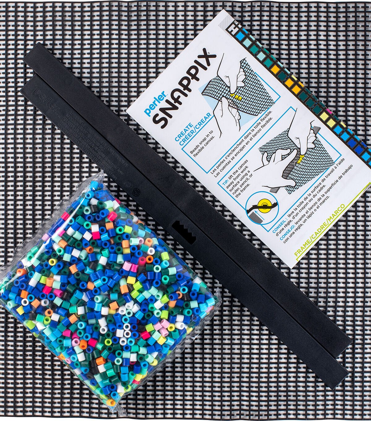 - Simply snap beads into the uniquely designed flexible canvas to create a mosaic-style design—no ironing required!