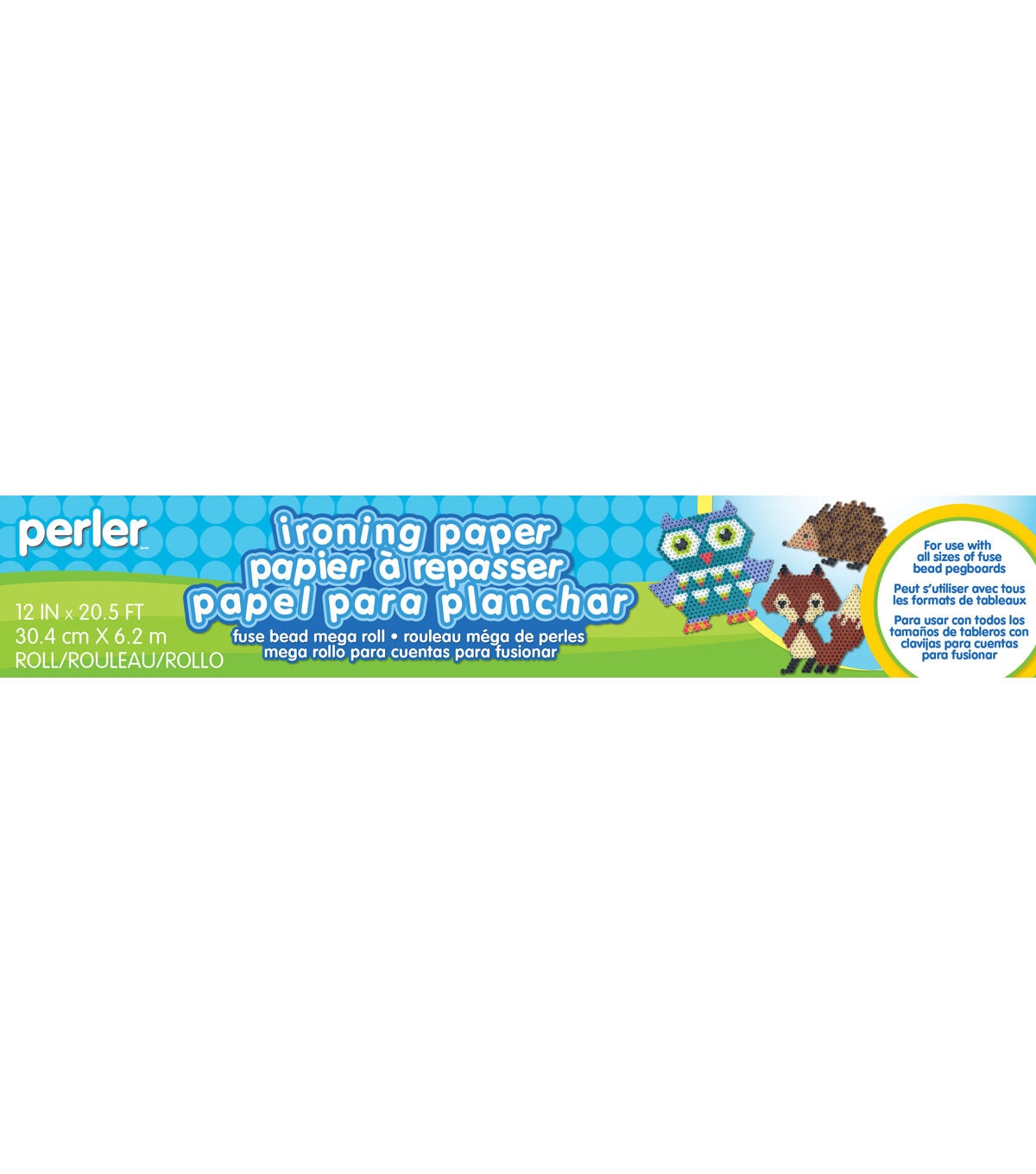 The Perler Ironing Paper Roll is designed for use with Perler Beads and pegboards. This reusable ironing paper is on a roll and can be cut to any size needed to fuse your Perler creations. Use a household iron and our special ironing paper to fuse the beads. Only adults should iron projects. When the project is properly fused, the centers of the beads should remain open. This is especially helpful for projects that involve assembly. The Perler pegboards and ironing paper are reusable.