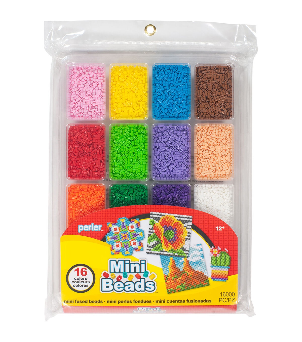 Summer is sure to be fun when you create designs with these mini fuse beads from Perler. The Summer Mini Bead Tray features 16,000 beads in 16 warm colors. The convenient storage tray with lid keeps colors organized. Bead colors: light pink, red, orange, cheddar, yellow, kiwi lime, dark green, toothpaste, turquoise, pastel lavender, purple, butterscotch, light brown, sand, white, and black.