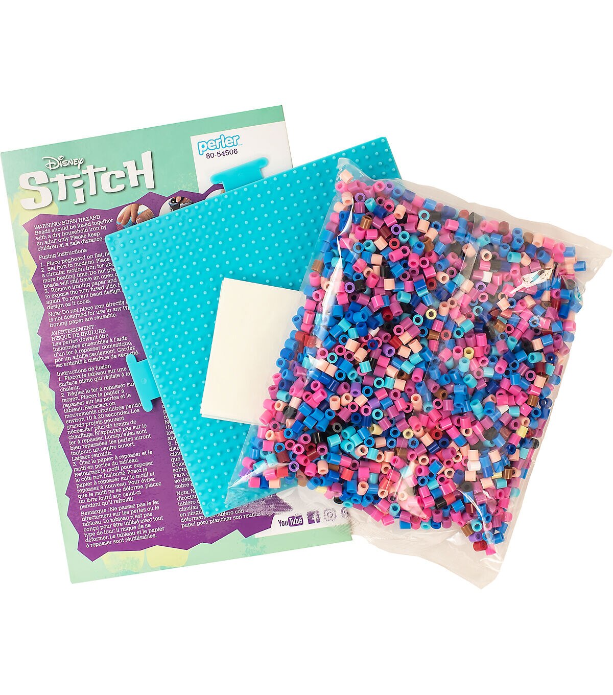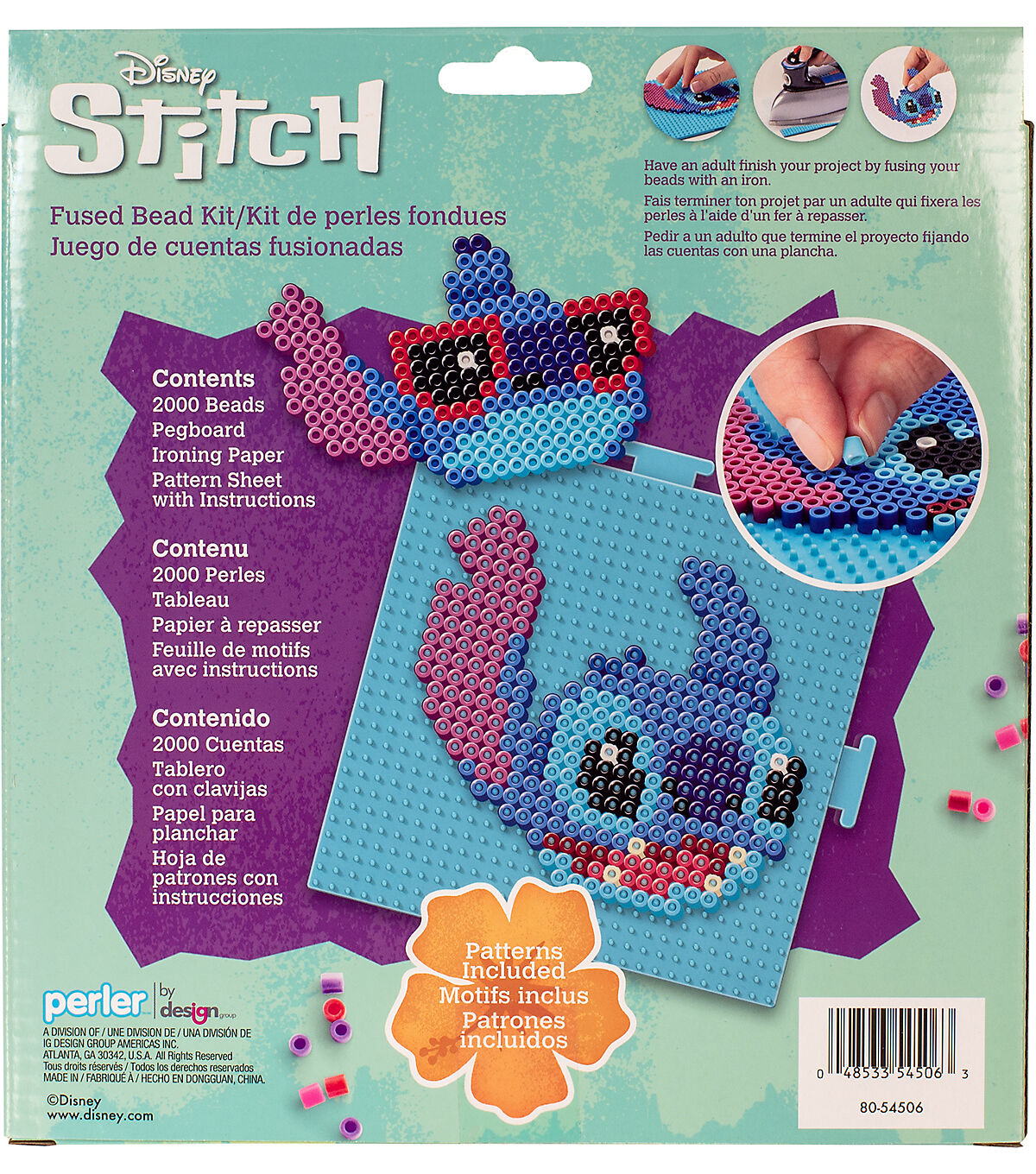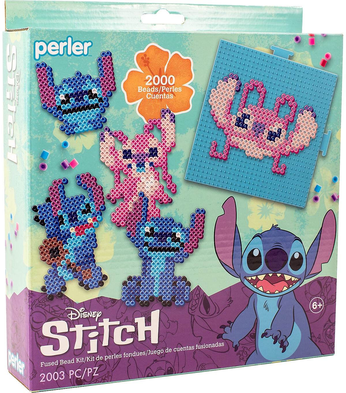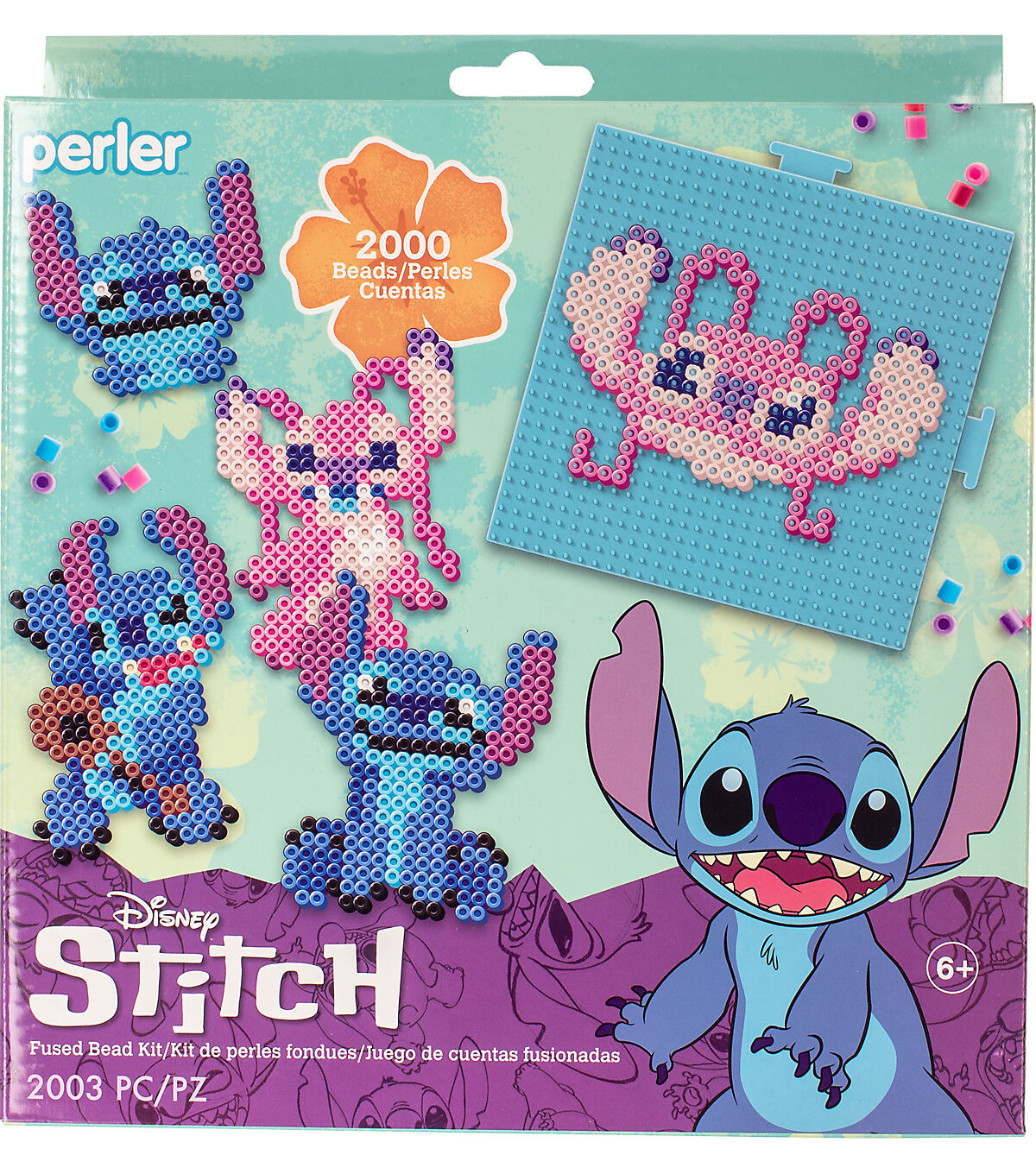 Create the mischievous yet lovable Disney character, Stitch, with this fun fused bead kit from Perler. Perler fuse beads are great for promoting skills such as hand-eye coordination, color recognition, basic math and counting, fine motor skills and imaginative play. Patterns included to make 7 different designs of not only Stitch, but Angel too! © Disney/www.disney.com. Designed for ages 6 and up. Kit contains 2000 beads, pegboard (large interlocking square), pattern sheet with instructions, and ironing paper. Ironing to be done by an adult only.
