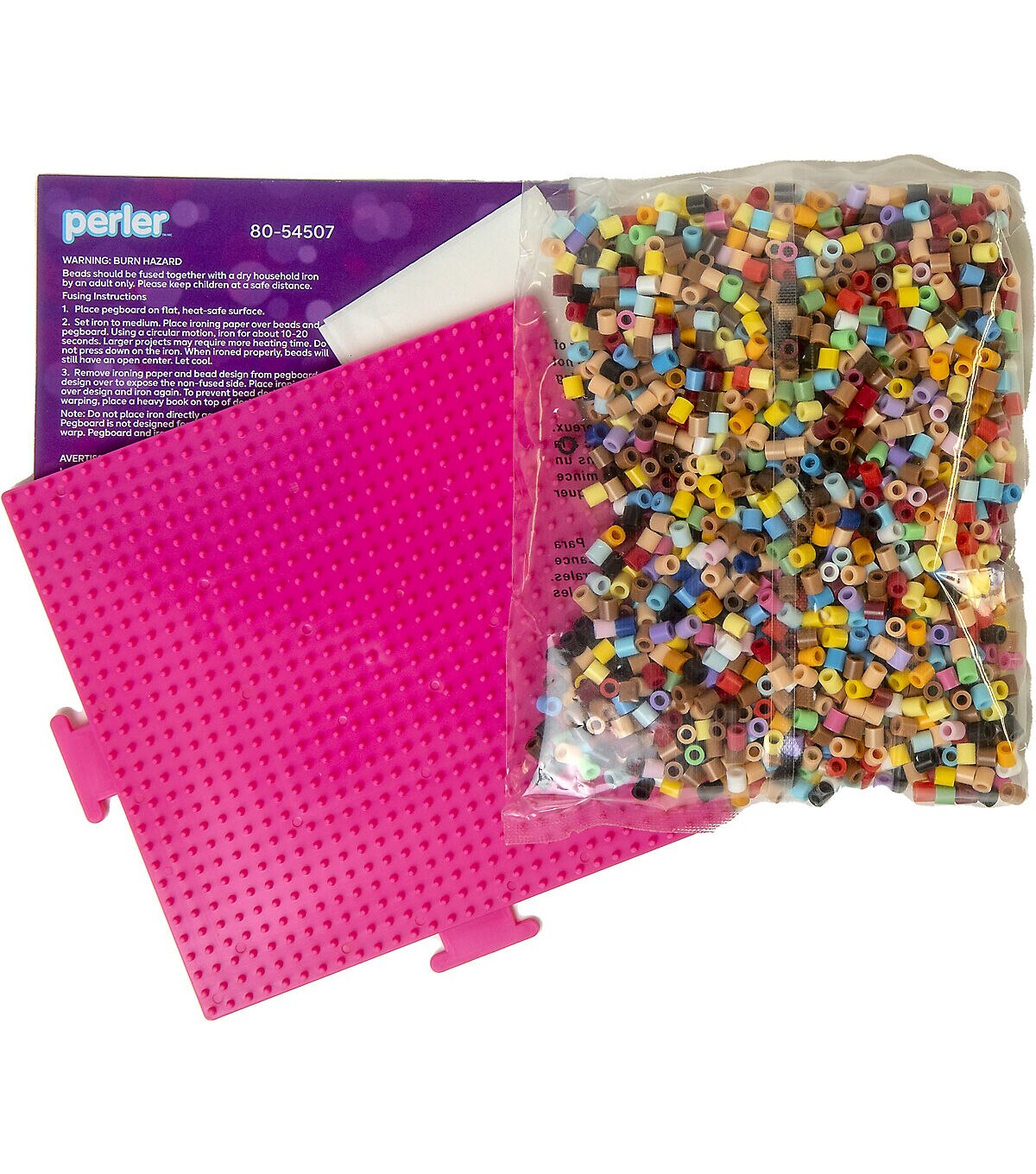 - Includes 2000 beads, pegboard (large interlocking square), pattern sheet with instructions, and ironing paper