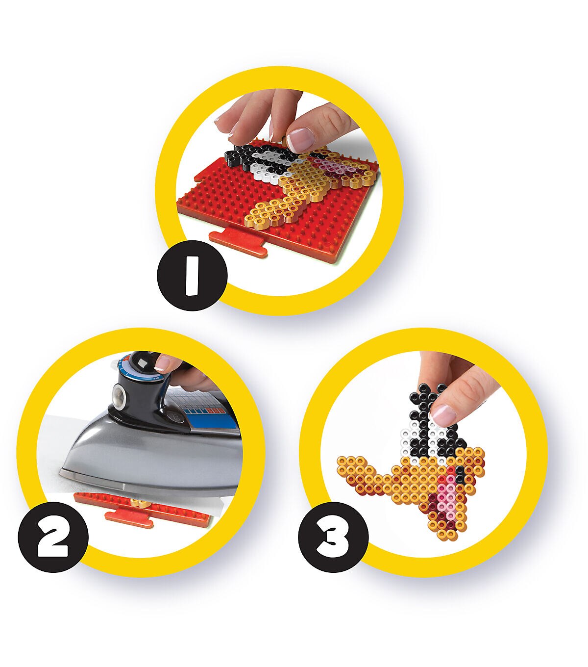- Contains 2000 beads, 2 pegboards (small interlocking squares), pattern sheet with instructions, and ironing paper