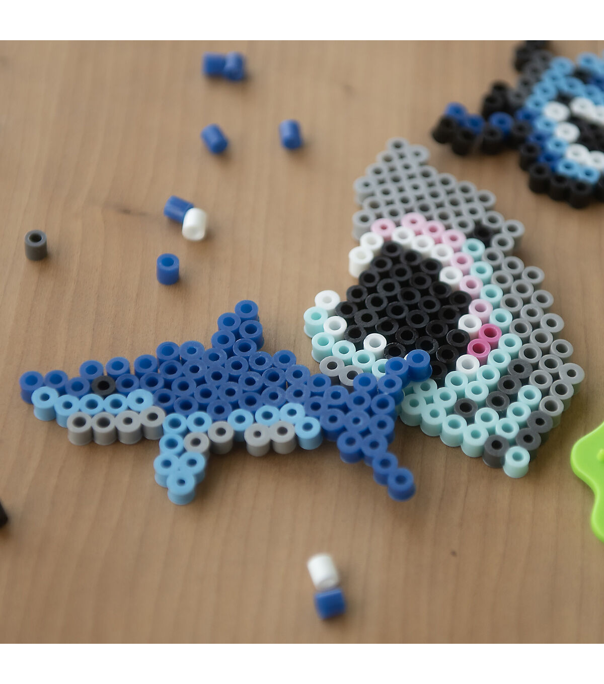 The Perler Sharks Fused Bead activity kit combines classic beads with fun striped beads to create sharks, sharks and more sharks! Makes 9 projects, perfect for gifts and play dates! Use a household iron and our special ironing paper to fuse the beads. Only adults should iron projects. When the project is properly fused, the centers of the beads should remain open. This is especially helpful for projects that involve assembly. The Perler pegboards and ironing paper are reusable.
