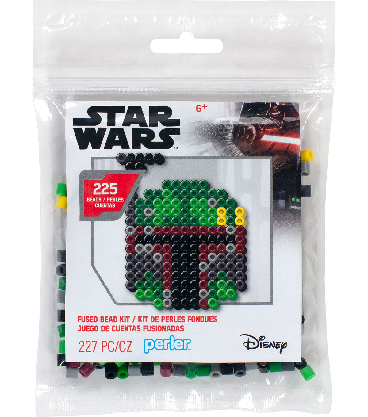 The Boba Fett activity kit is a perfect introduction to fuse beads from Perler. This Star Wars design makes a great little gift to include in an Easter basket or Christmas stocking. Package includes 225 beads, pegboard, pattern with instructions, and ironing paper. © & ™ Lucasfilm Ltd.