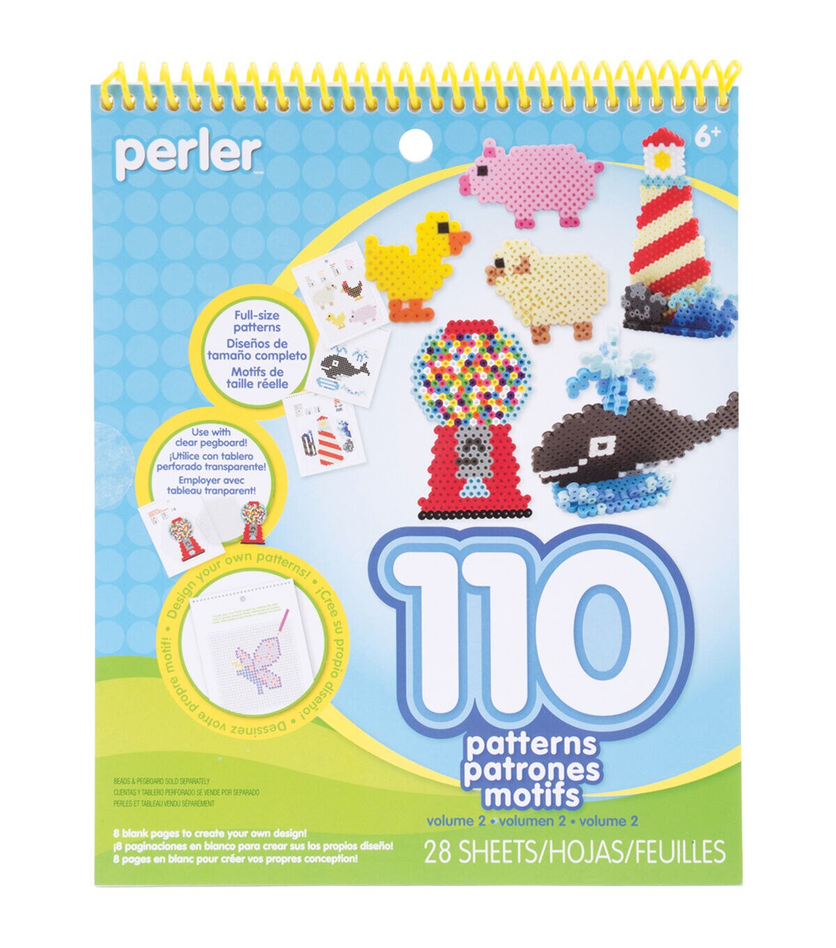 PERLER-Pattern Pad Volume 2. Choose from a variety of pre-designed patterns or draw your own for hours of creative fun! Pick a pattern, place a clear pegboard on top, design with Perler beads, and fuse the project! There are 110 full-size images plus blank pages to create your own. This package contains one spiral-bound pattern pad. All pegboards and beads sold separately. Imported.