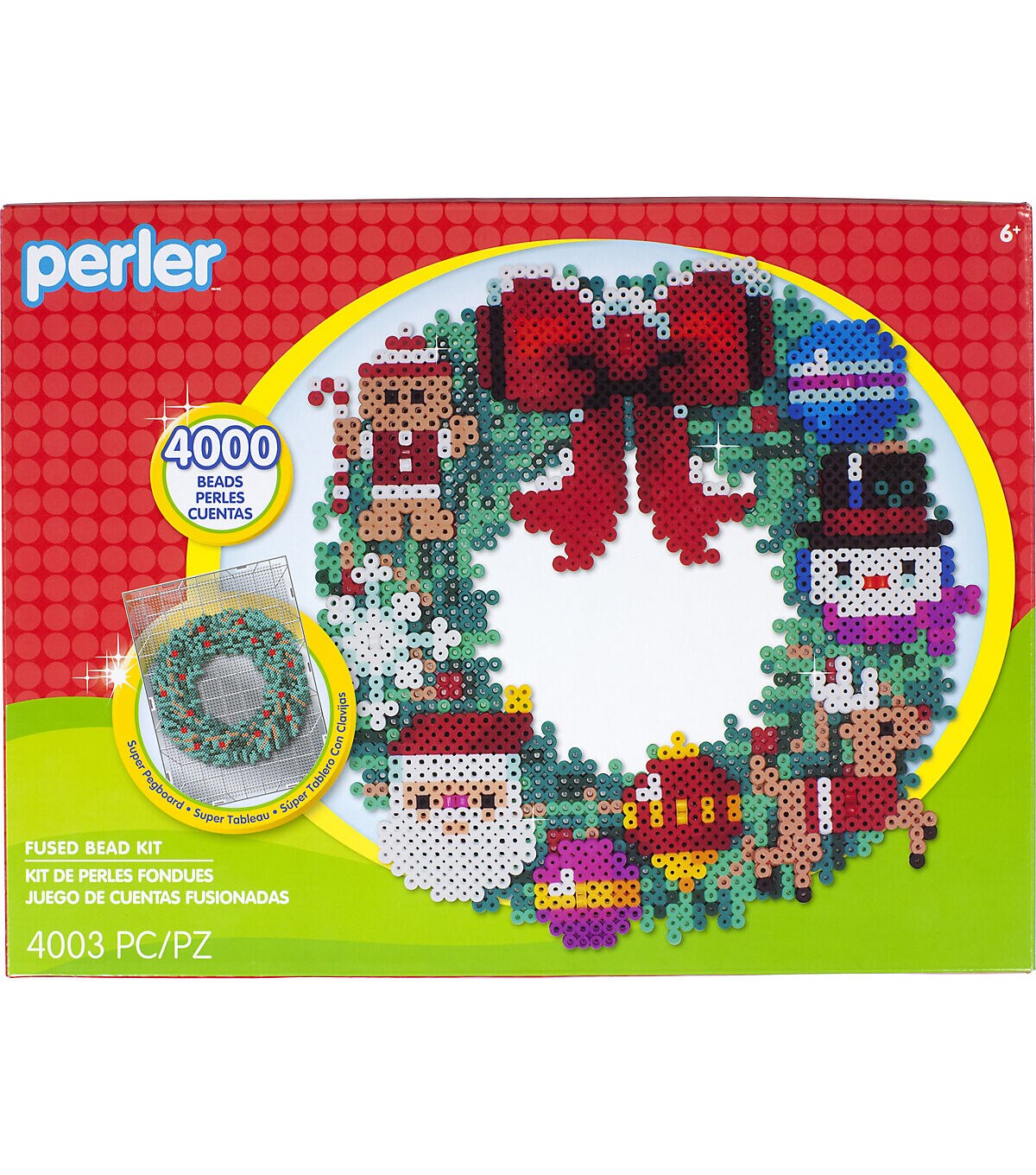 This 3-dimensional Christmas wreath made with fuse beads from Perler is a great family project for the holiday season. Easy-to-follow patterns and illustrated assembly instructions are included. Perler beads are great for promoting fine motor skills, color recognition, and imaginative play. For ages 6 and up. Ironing to be done by an adult only.