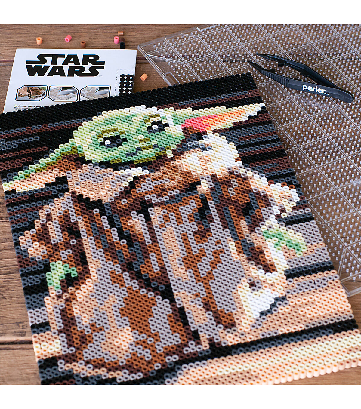 Create a detailed depiction of The Child from the Disney+ series, The Mandalorian, with this fuse bead kit. It makes a great gift for fans of all things Star Wars. Pegboard and ironing paper are reusable. For ages 12 and up. Lucasfilm Ltd.