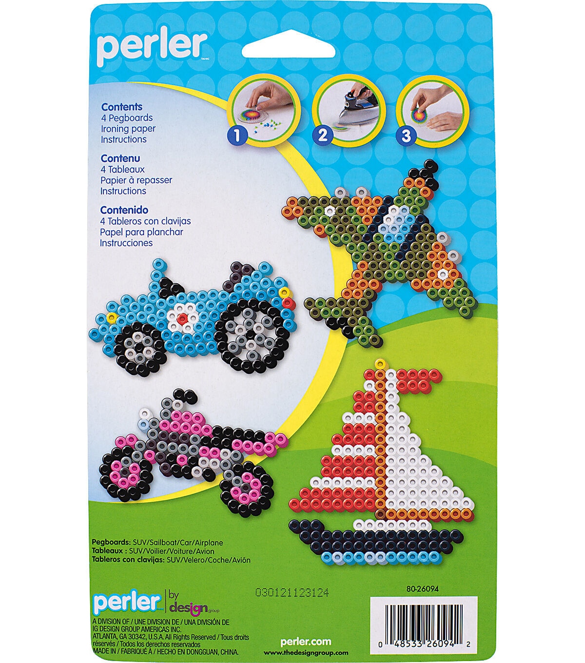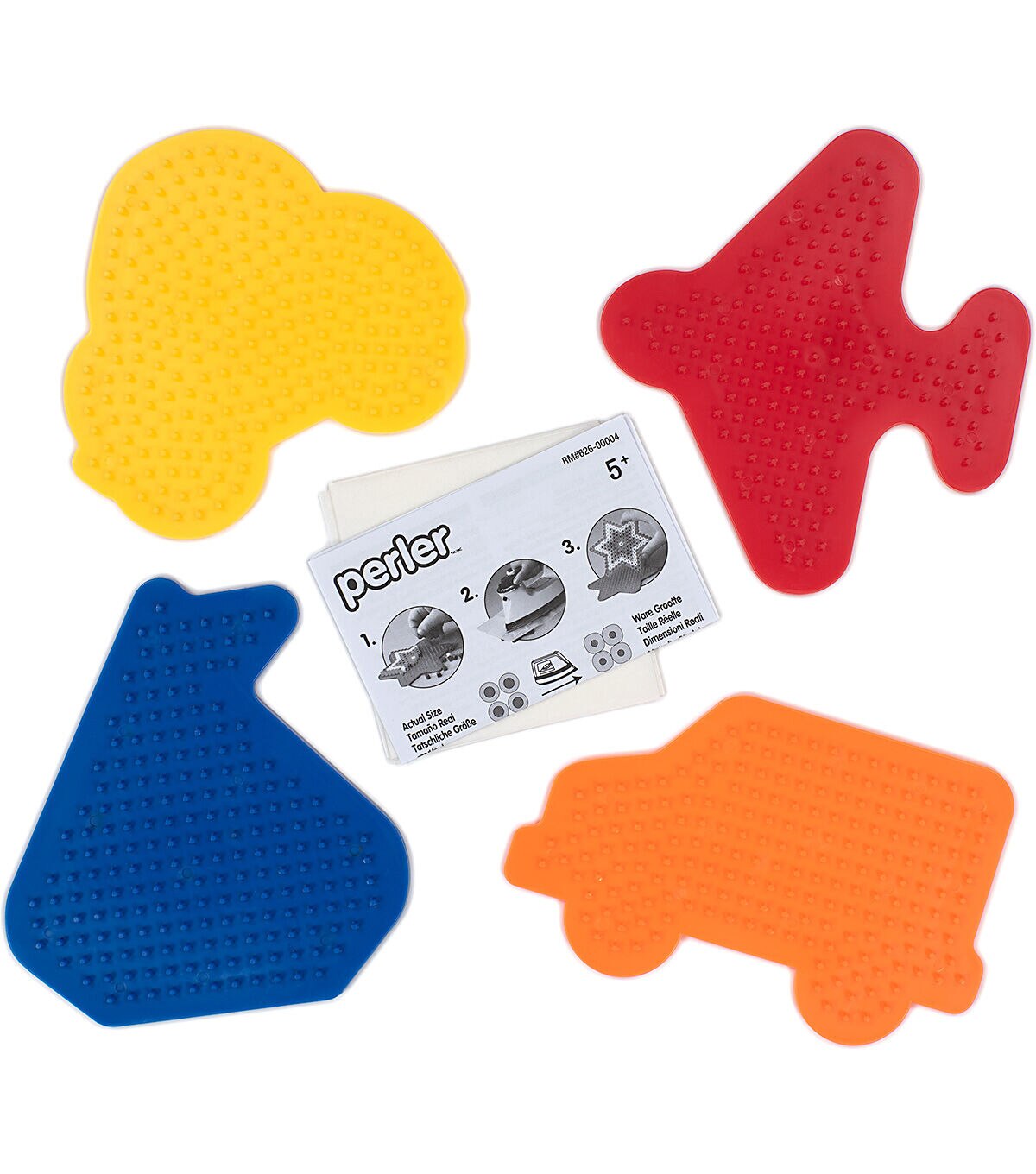 - Includes 4 shaped pegboards, ironing paper, and fusing instructions
