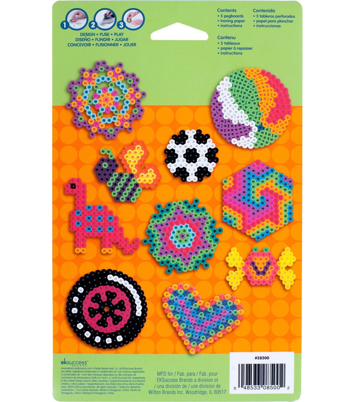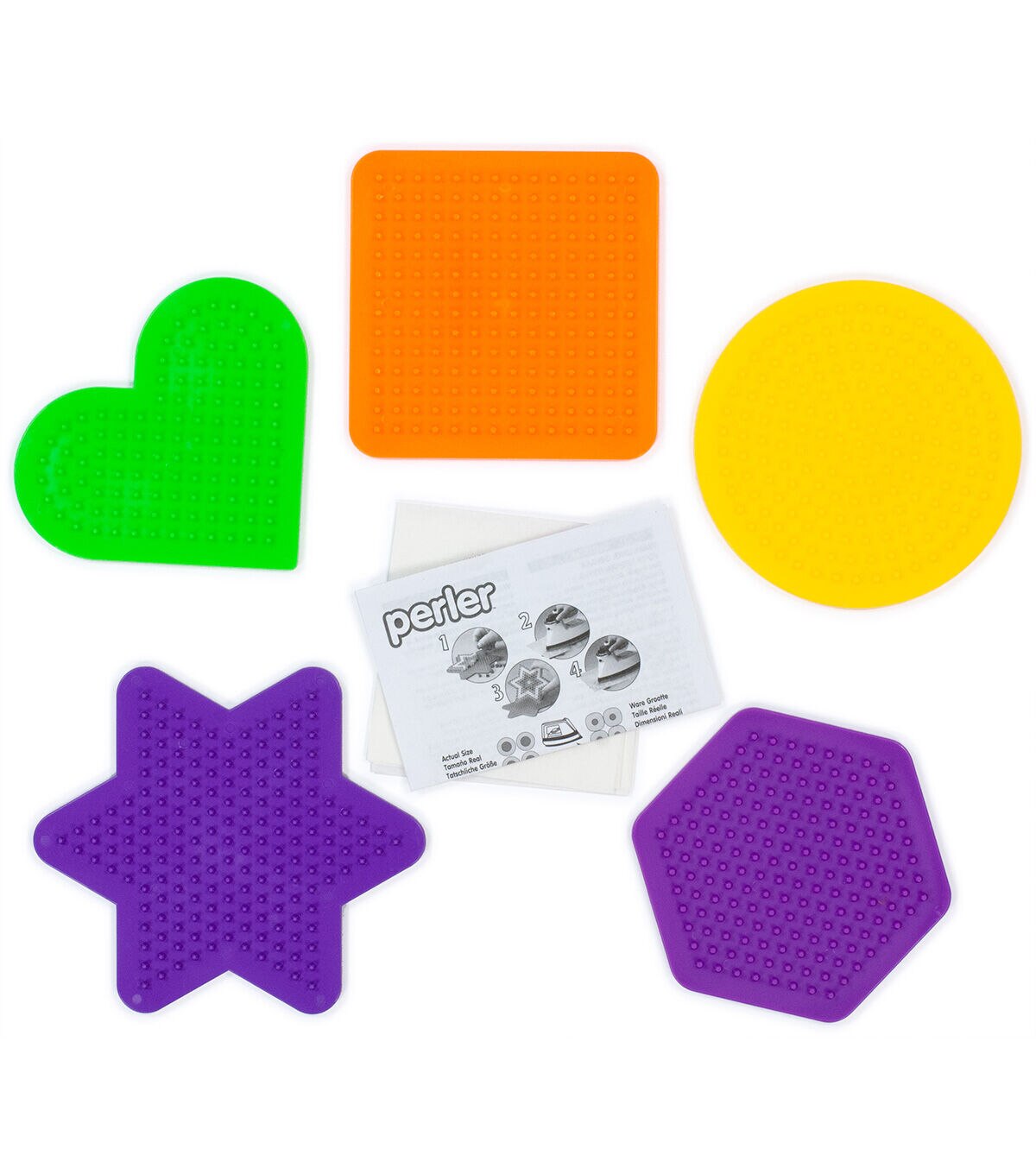 Use these Perler Beads Assorted Pegboards with Perler beads to create fun designs with your kids. This set includes one daisy, car, dog, dolphin, and heart pegboard each, in assorted colors. Kids can place their beads on the pegboard, cover using ironing paper, and use an iron to fuse the beads together. They can reuse the boards once the beads are fused together.
