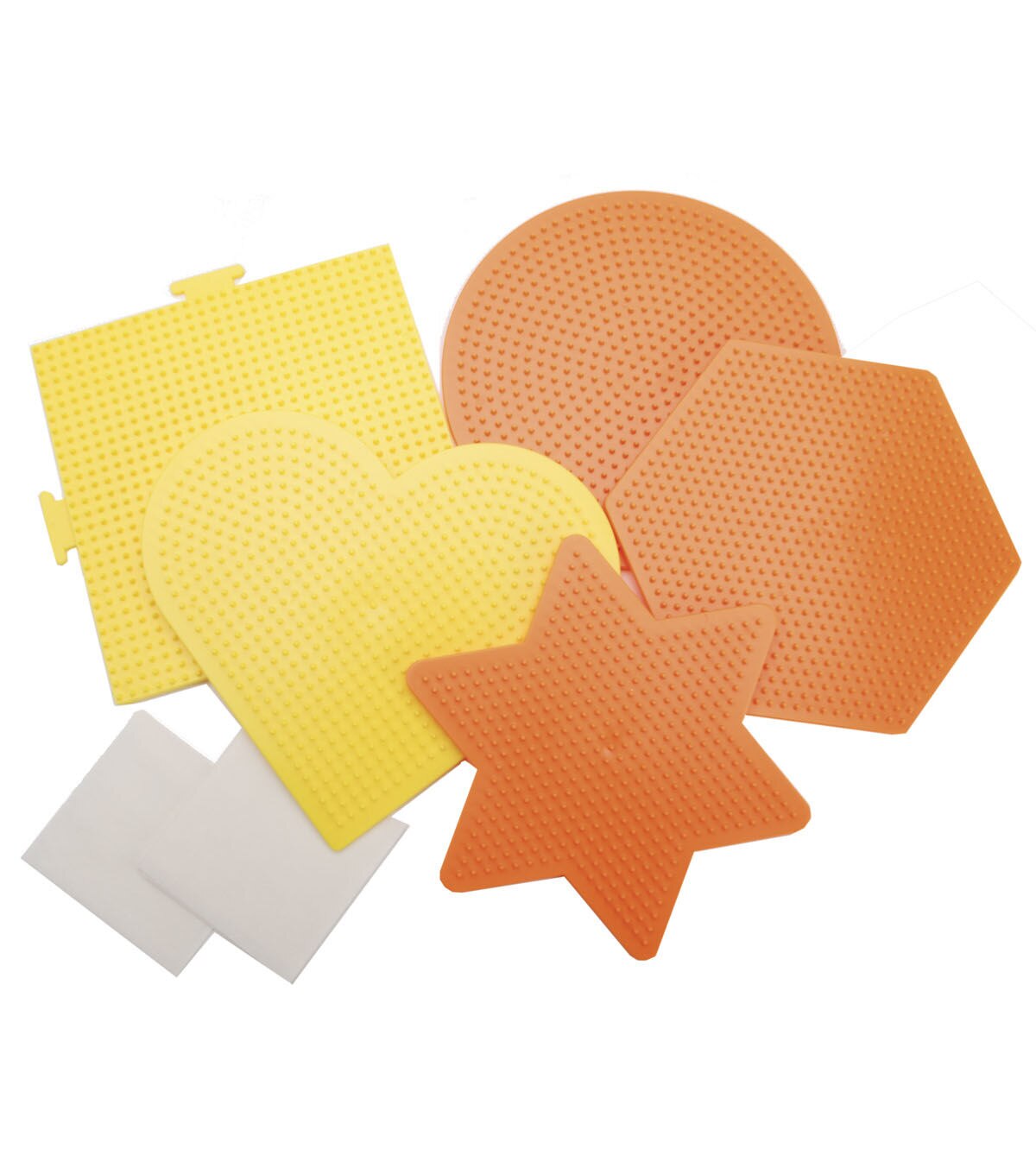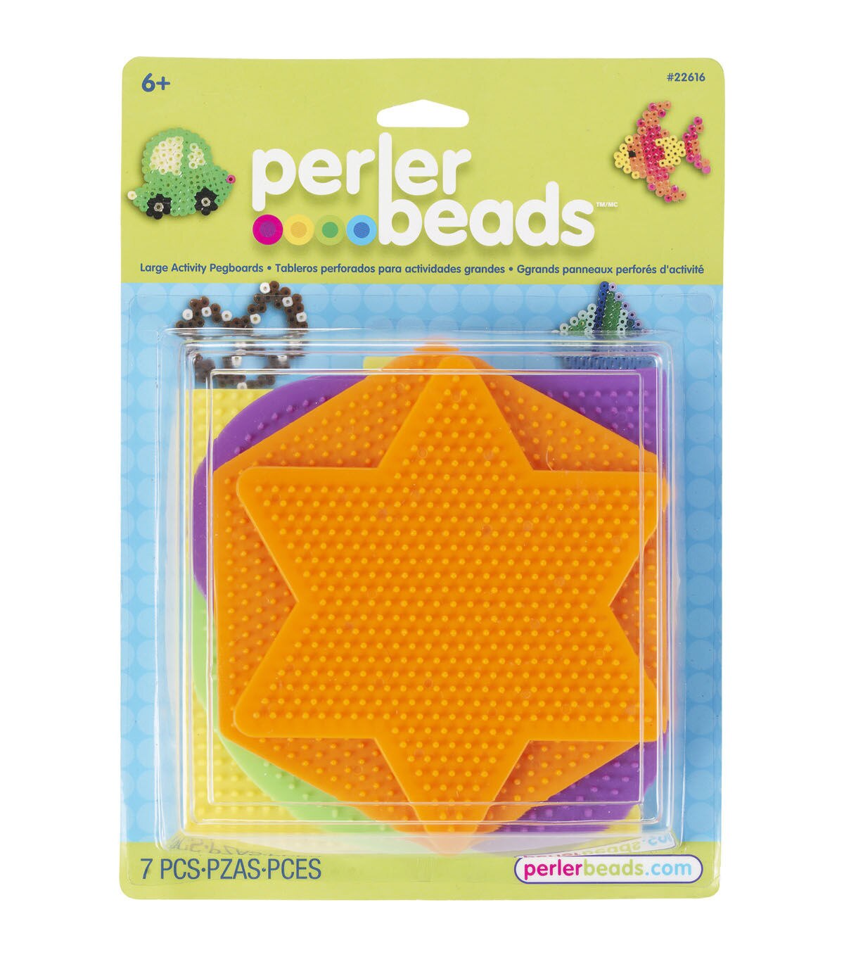 PERLER-Funfusion Activity Pegboards. Perler bead activities are a great way to teach kids counting and colors. Just design, fuse, and play! This package contains five large plastic pegboards: Star (5x 5-3/4in), Heart (6x6-1/2in), Hexagon (5-1/2x6-1/2), Circle (6x6in), Square (5-1/2x5-1/2), plus a re-usable ironing sheet, and instructions. Perler beads not included. Color of pegboards may vary. Recommended for ages five and up. Made in USA.