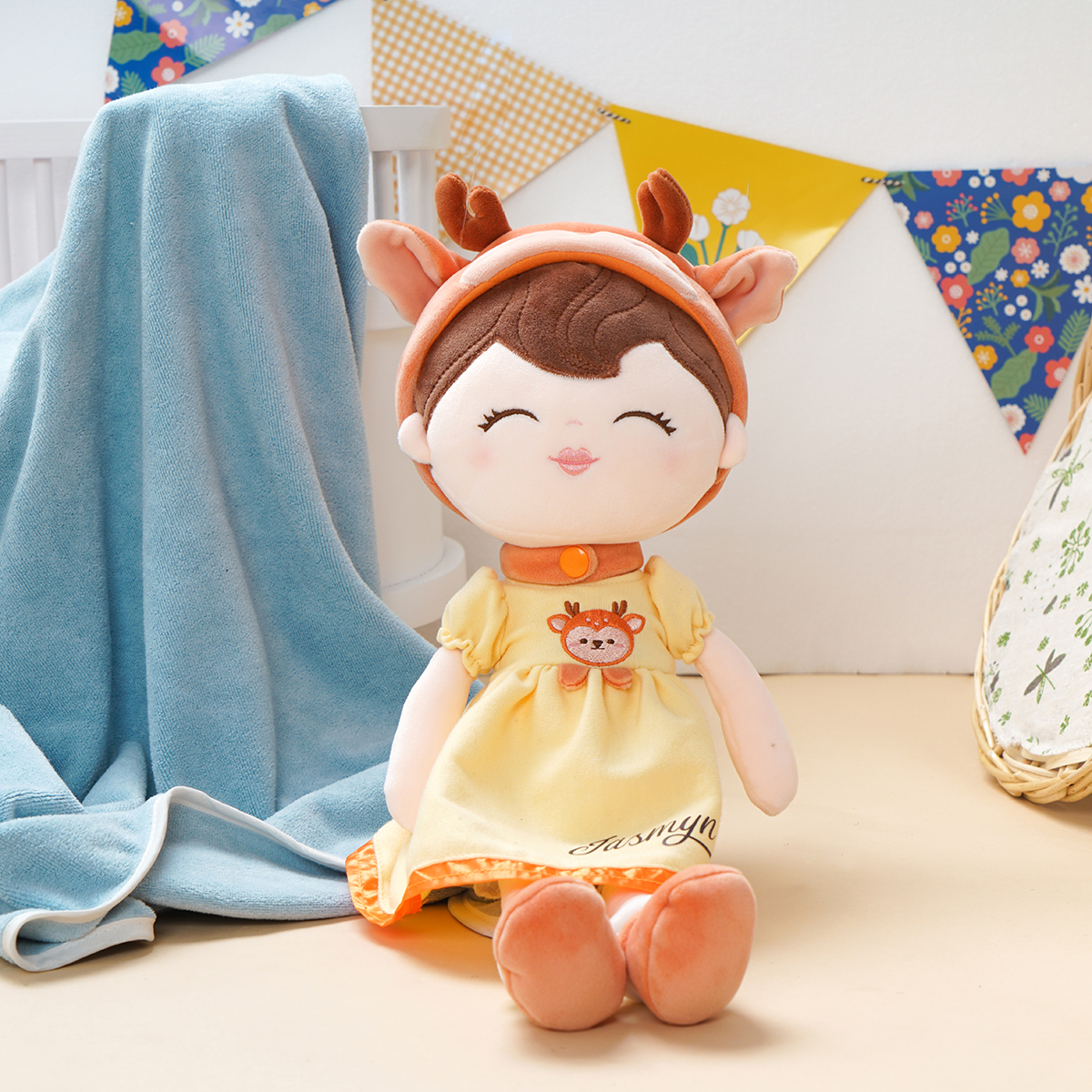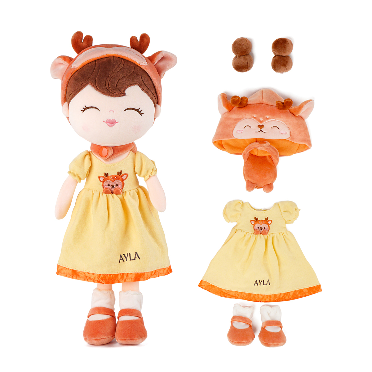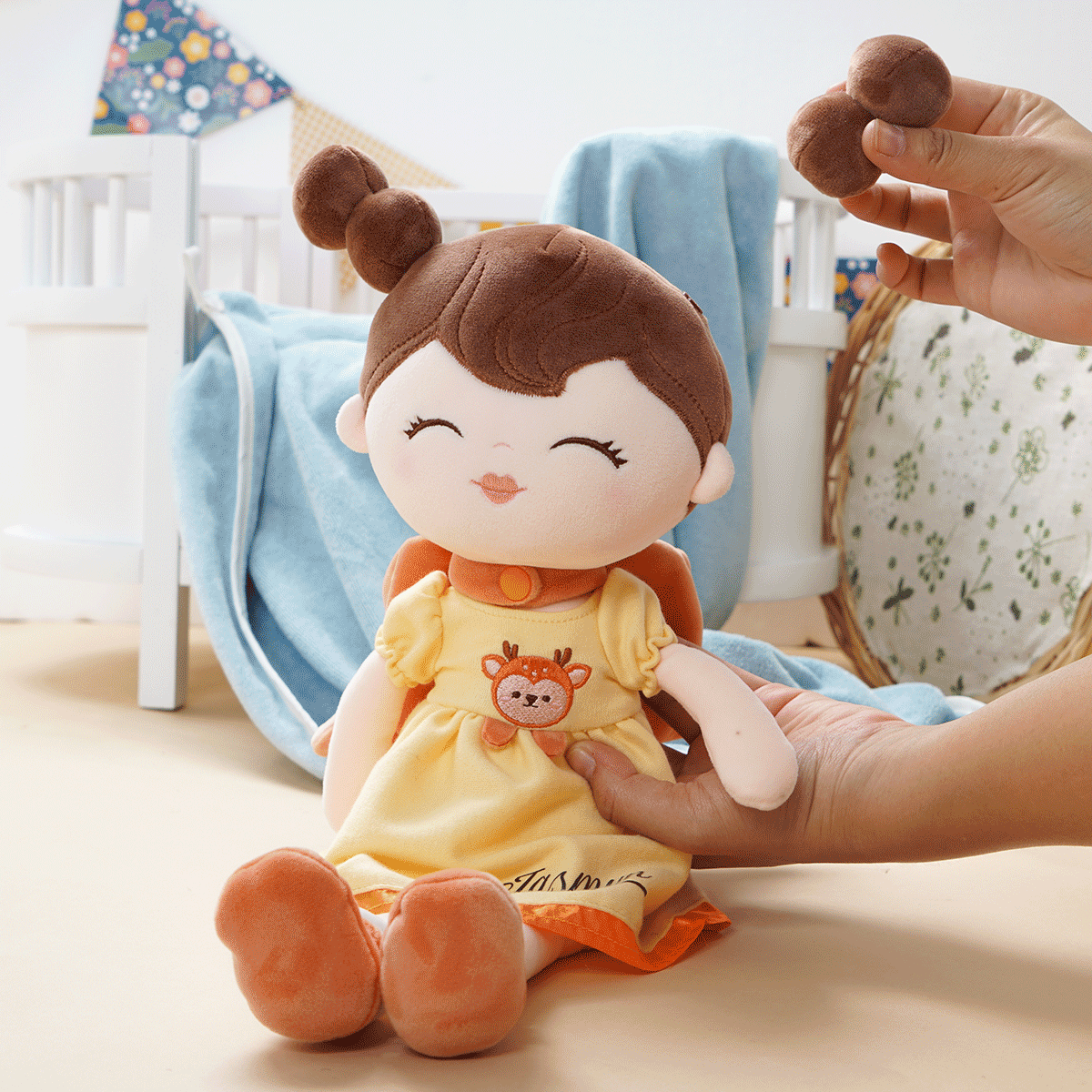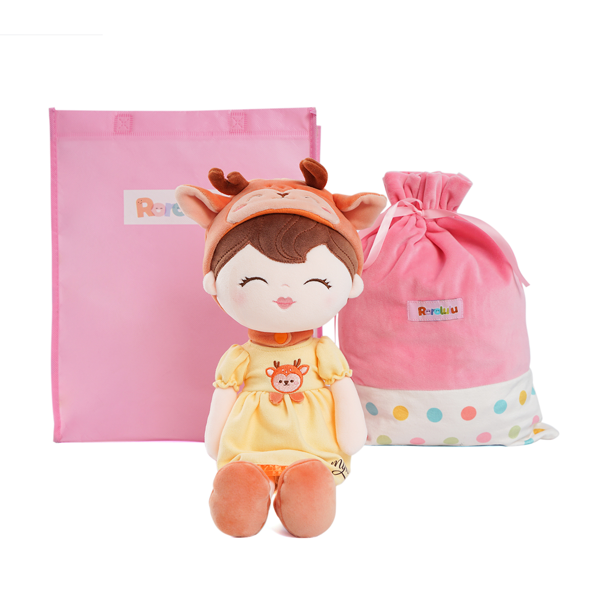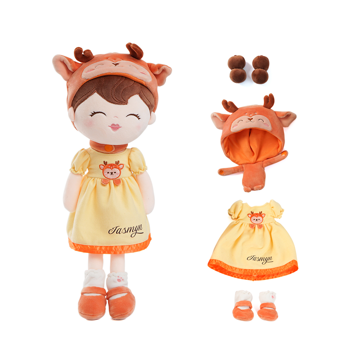Wow, this is an exclusive suite for the light color deer doll,a cute antler hat, a light yellow embroidered skirt, and small shoes, like a forest elf, what a perfect match! The clothes are all wearable series, which not only cultivates the baby's DIY hands-on ability and imagination but also exercises the baby's self-reliance ability, step by step, wear clothes and hats by yourself.