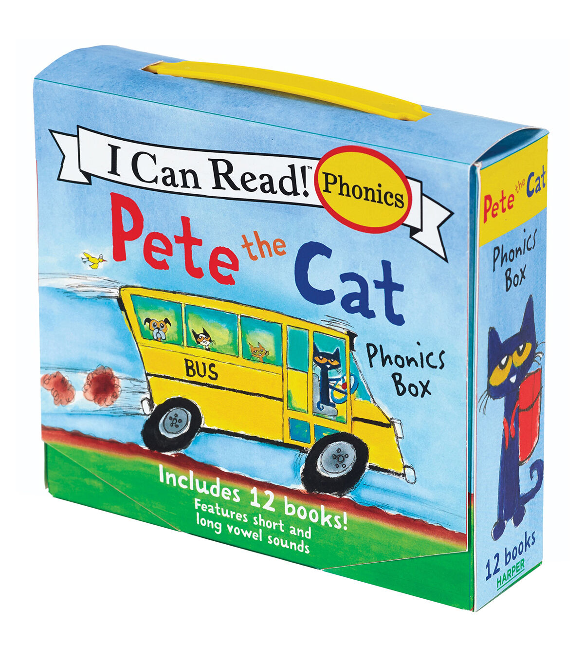 New York Times bestselling author and artist James Dean's Pete the Cat helps kids learn to read with phonics. Who knew reading could be so groovy! Reviewed by a phonics expert, these twelve short full-color books feature repeated examples of short and long vowel sounds and common sight words. Each of the simple stories in this box set is designed to teach kids how to master reading while rocking out with Pete the Cat. Phonics teaches children the relationship between letters and the sounds they make. A child who has mastered these relationships has an excellent foundation for learning to read and spell. According to the National Institute of Child Health and Human Development, a child who has learned phonics has a method to recognize familiar words and "decode" unfamiliar ones. Correlates to the Common Core State Standards in English Language Arts.