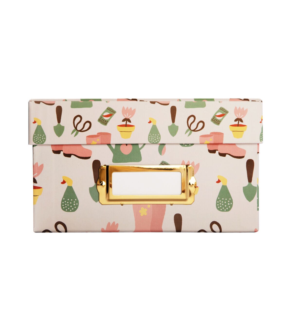 Keep your treasured photos safe from dust and damage using the Photo Storage Box - Playful Garden. It sports a lovely print of gardening tools and planters. This storage box comes with a lid and a gold-toned cardholder. You can also use it to store small decor accents, holiday ornaments or pack gifts.