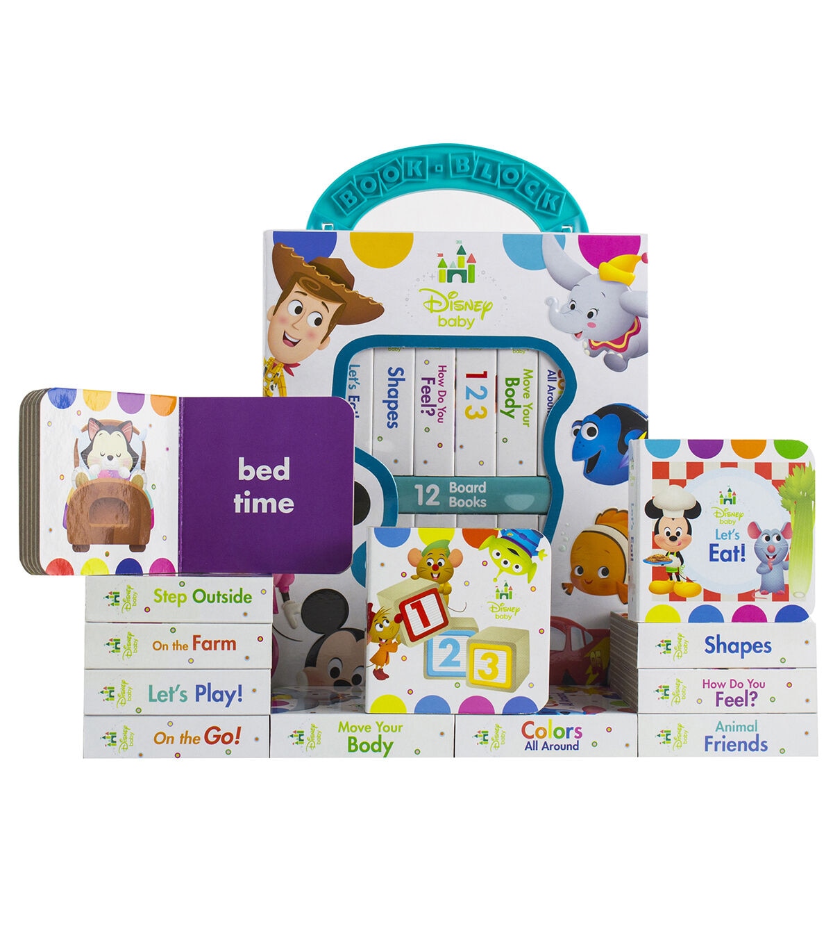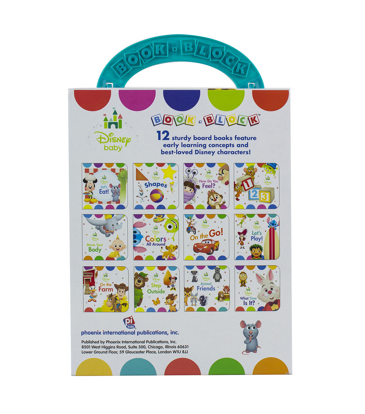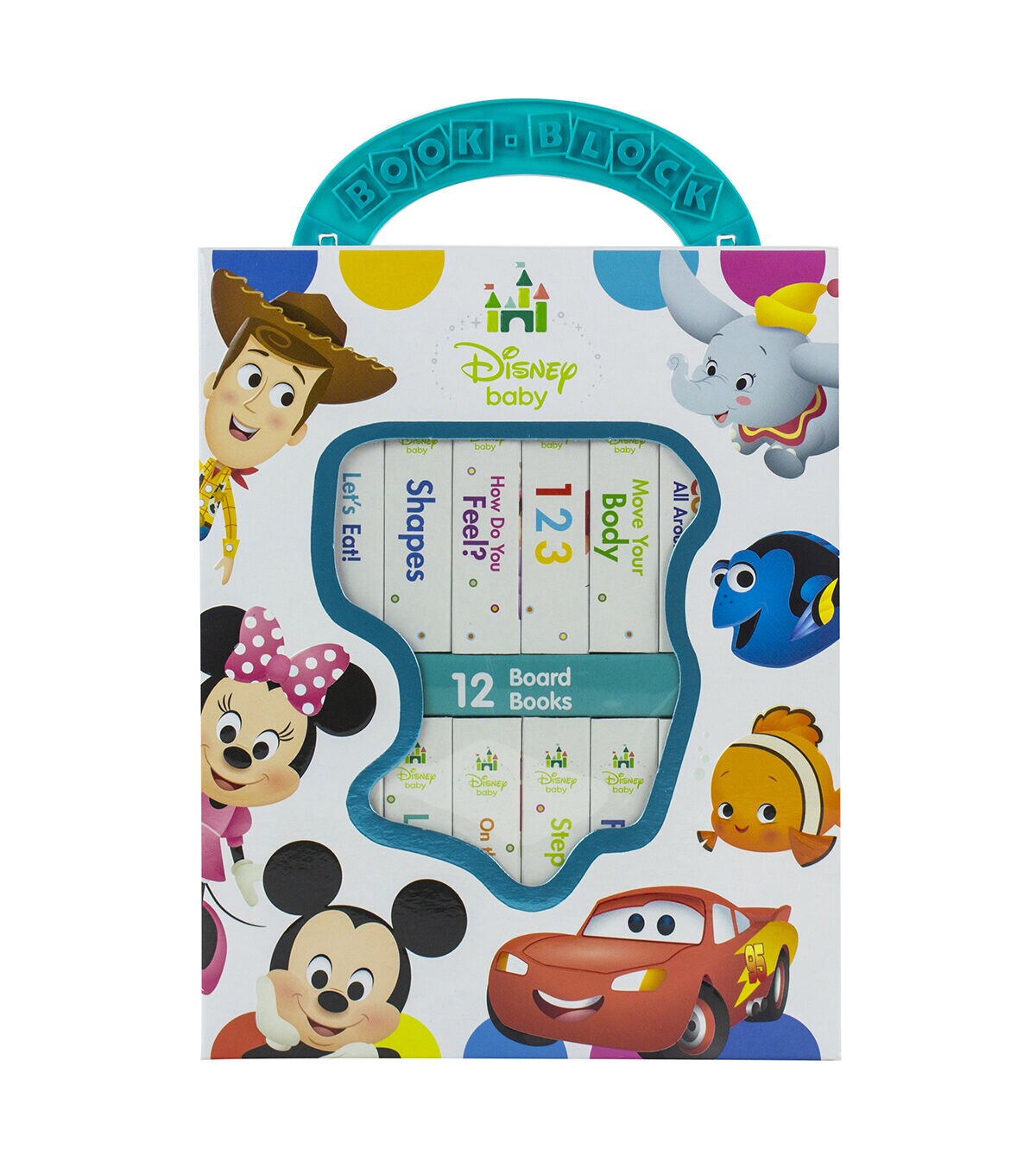 Little ones love to laugh and learn along with their favorite characters! Carry-case makes it easy to tote this 12-book set wherever you go. Book content includes early learning concepts. Sharing story time with your little one strengthens your bond. Handling books at an early age leads to a lifelong love of reading. Includes 12 books. Books measure 2.875" x 2.875". Box measures 6.75" x 8.5" x 3".