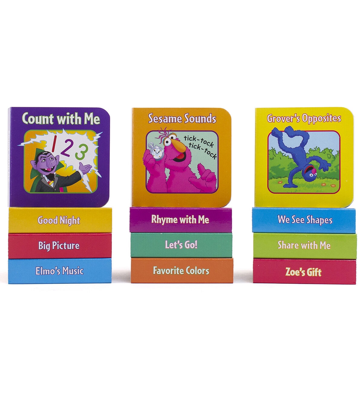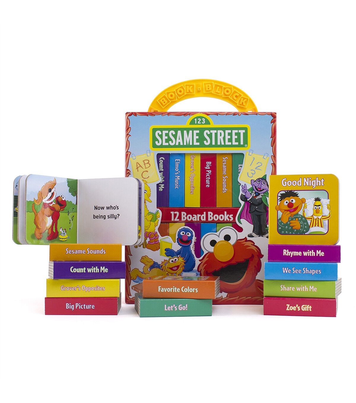 Little ones love to laugh and learn along with their favorite characters! Carry-case makes it easy to tote this 12-book set wherever you go. Book content includes early learning concepts. Sharing story time with your little one strengthens your bond. Handling books at an early age leads to a lifelong love of reading. Includes 12 books. Books measure 2.875" x 2.875". Box measures 6.75" x 8.5" x 3".