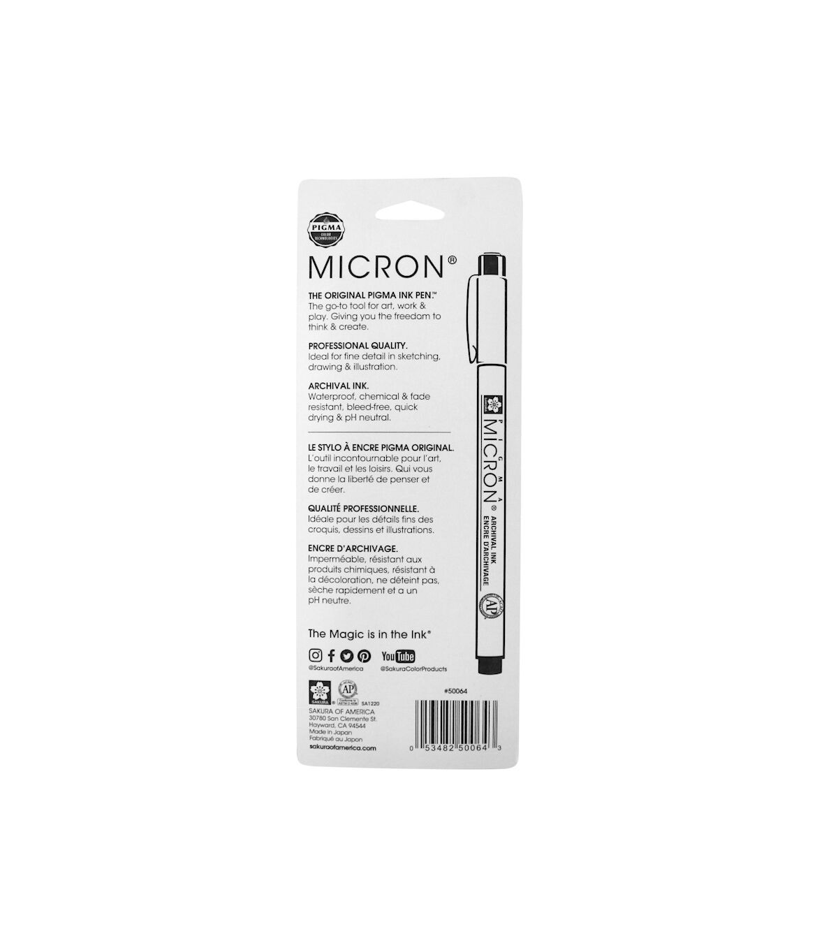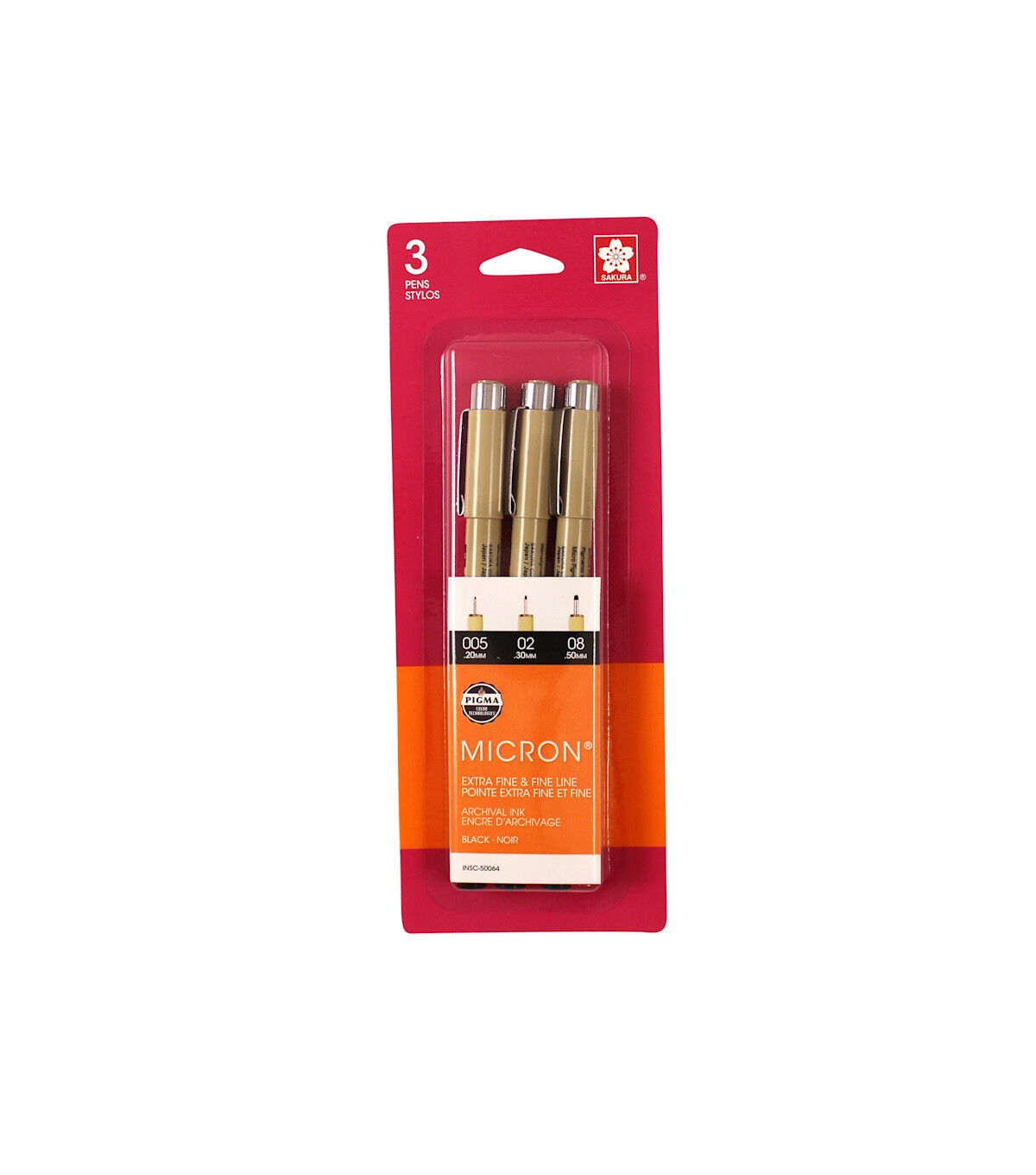 These pens have a waterproof, quick-drying pigment ink that will not feather or bleed through even the thinnest papers. The inks are smearproof once dry and fadeproof against sunlight or UV light. This package contains three 5.25 inch long pens with assorted size tips (.20mm, .30mm and .50mm). Archival quality. Conforms to ASTM D 4236. Imported.