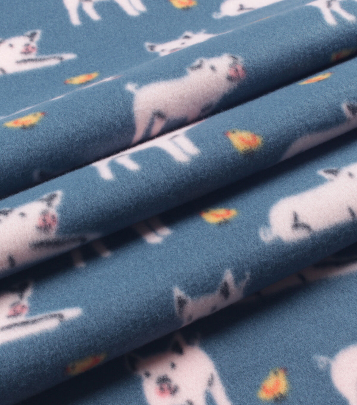 Get Cozy with Pigs and Chicks on Blue Blizzard Fleece Fabric