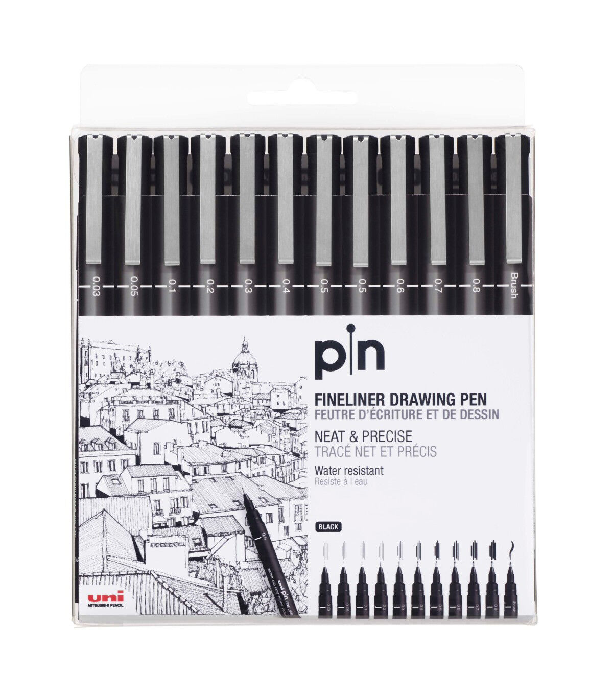 Pin Fineliners are loved by artists and professionals around the world. Especially suited for drawing, illustration and design, this versatile fineliner features Super Ink technology, which provides high intensity, depth and water-resistance without bleed-through. The nib is supported and protected by steel meaning the PIN drawing pens are long-lasting and will not be damaged from use with stencils. The pigmented ink is quick-drying for smudge-free erasing while inking over drawings.