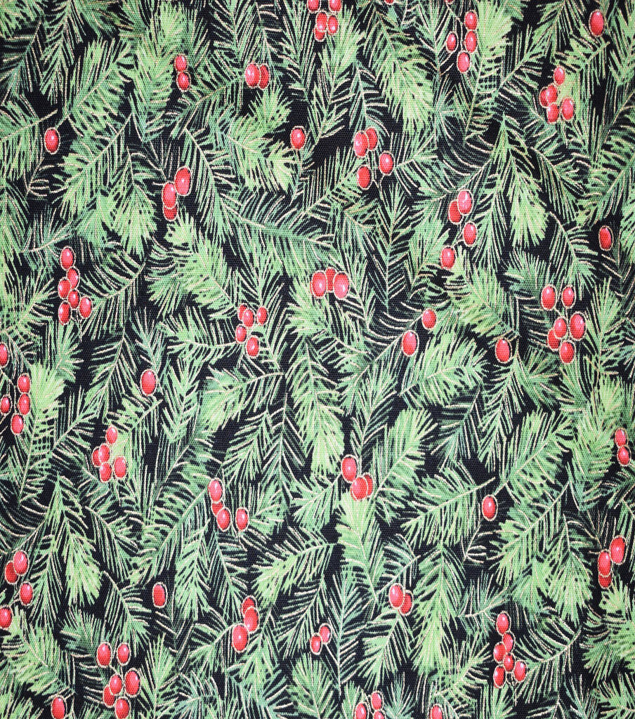 Get into the Festive Spirit with Pine & Berries on Black Christmas Metallic Cotton Fabric