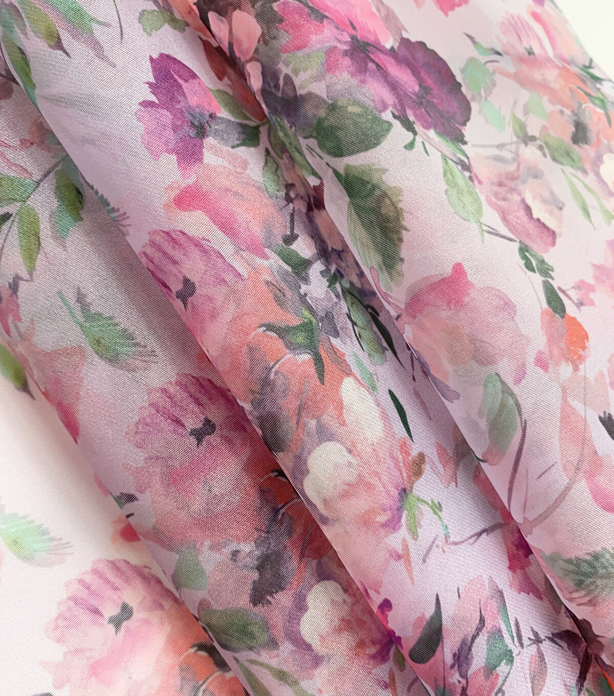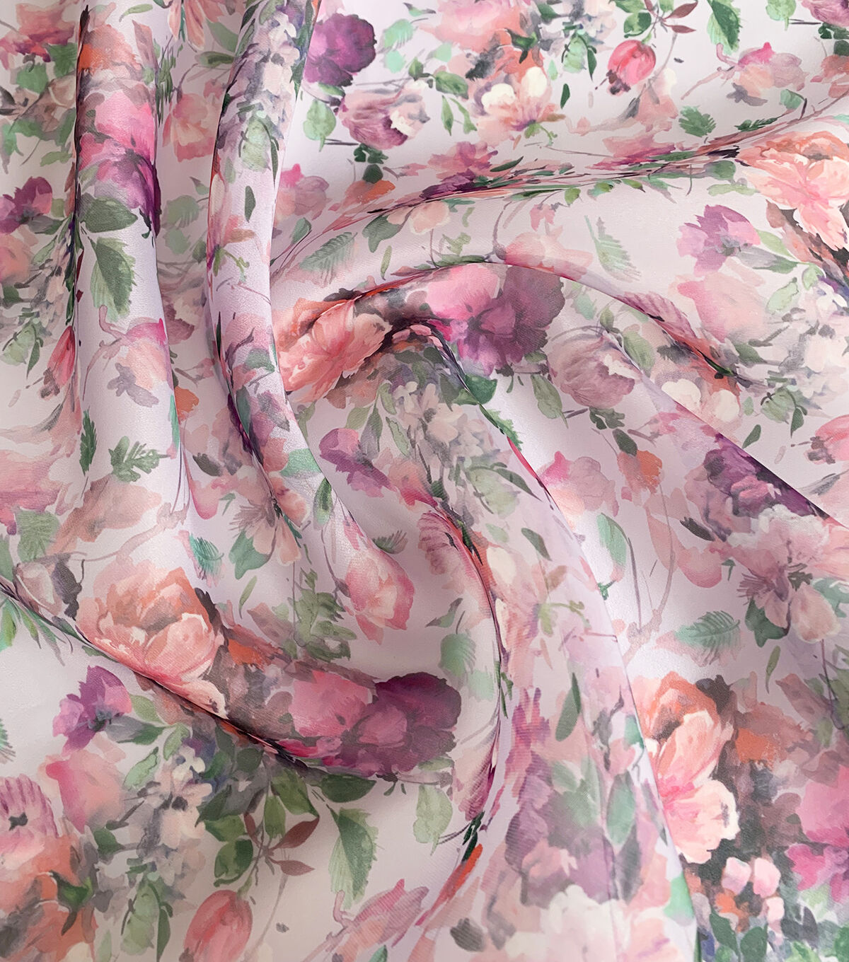 • Pink Bouquet Floral Print Organza Fabric by Sew Sweet