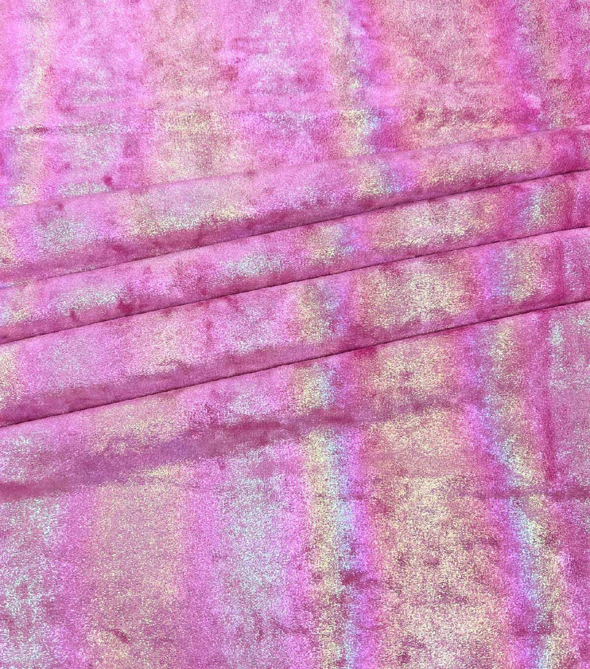 • Pink Crushed Velvet With Rainbow Foil Apparel Fabric
