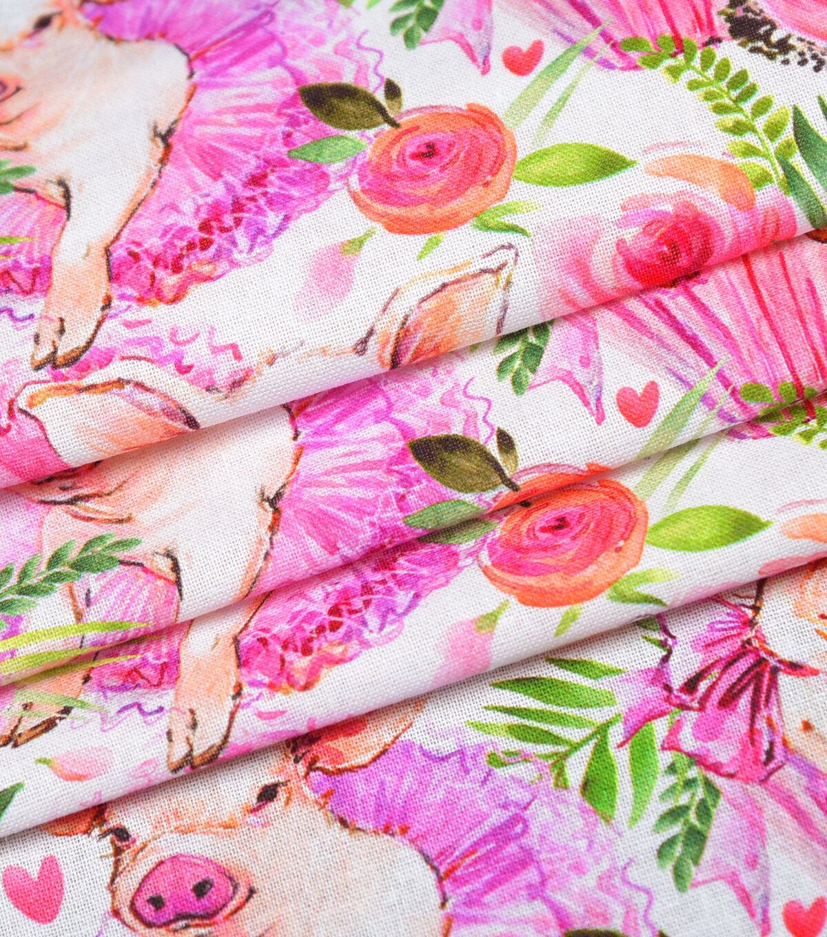 Pink Cute Piggies In Tutus Novelty Cotton Fabric