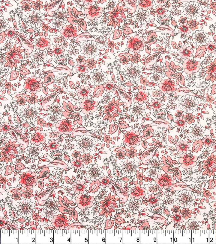 Pink Floral & Bird Quilt Cotton Fabric by Keepsake Calico