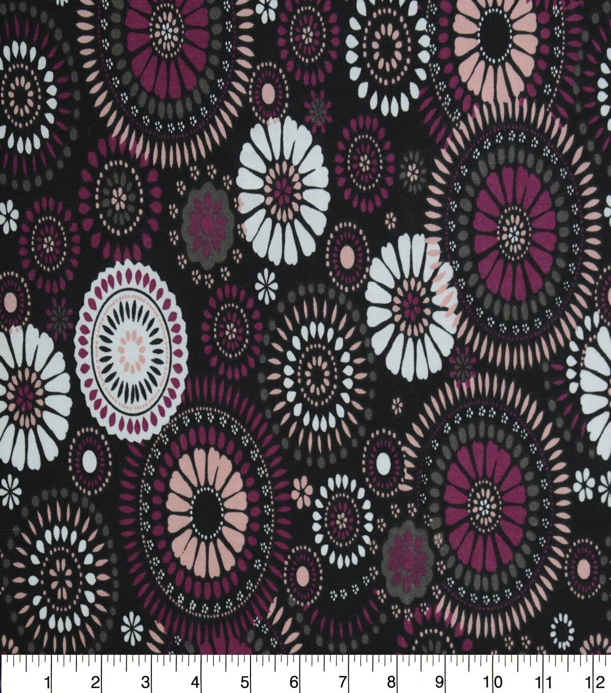 • Pink Floral Bursts on Black Quilt Cotton Fabric by Quilter's Showcase