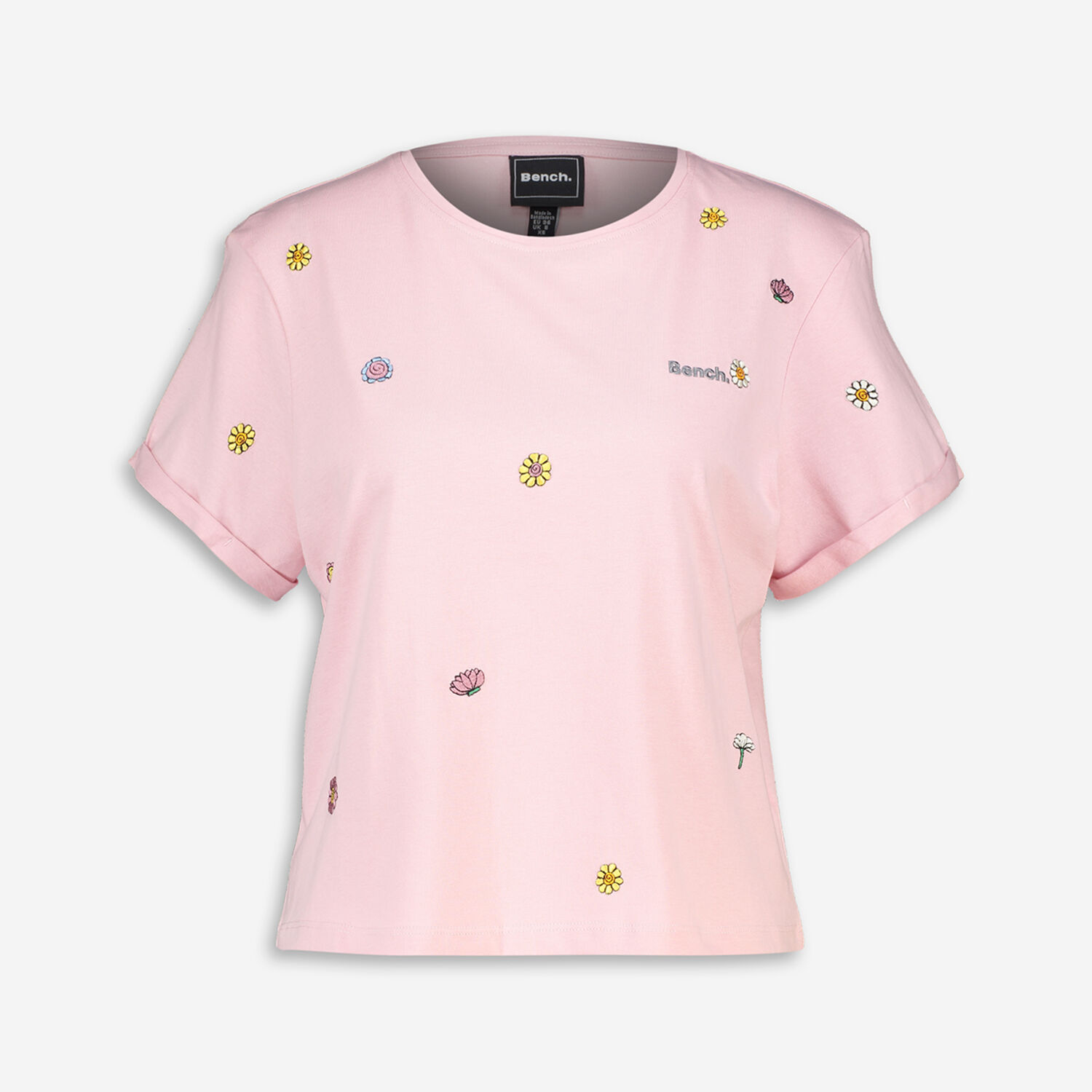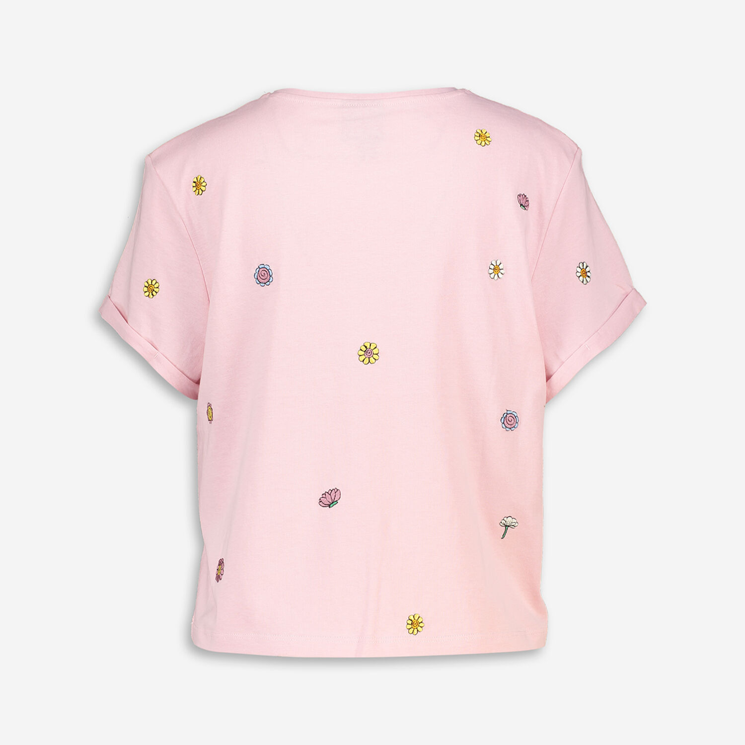 • Pink Floral Embroidered T Shirt