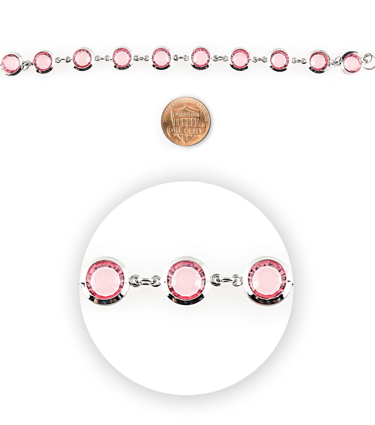 The hildie & jo Glass & Metal Bead Strand Connectors - Pink will come in handy for creating beautiful jewelry projects. This strand comes with beautiful connectors adorned with pink-hued stones. You can wear it as a bracelet or team it with beads and charms to design anklets or necklaces. They will also be perfect to make keychains or embellish decor projects.