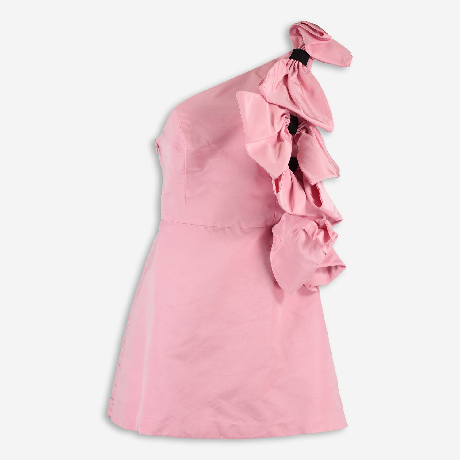 • Pink Large Bow Silk Mini Dress