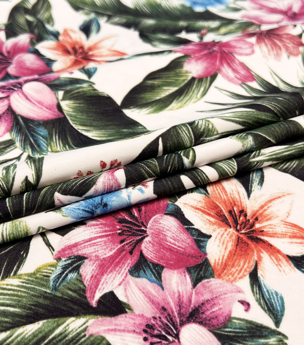 Make a splash this summer with our Pink & Orange Tropical Floral Swim Fabric. The vibrant colors and bold floral pattern will make you stand out at the beach or pool. This fabric is perfect for creating your own swimsuit or cover-up, so you can customize your summer style.