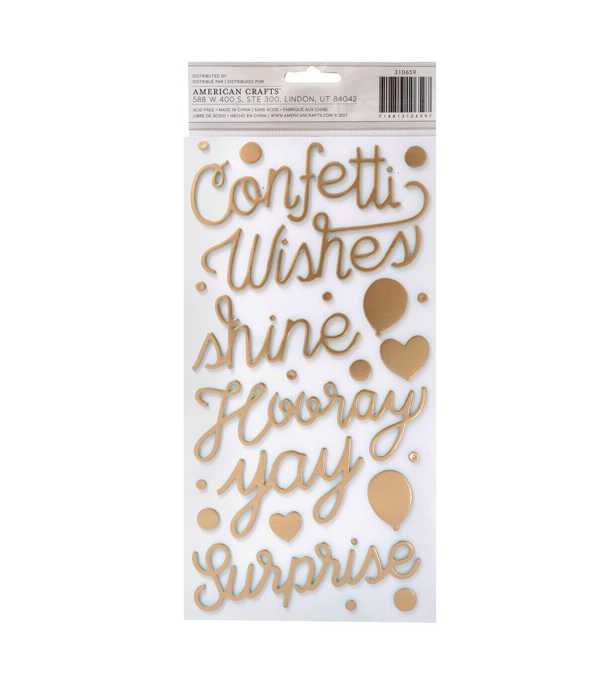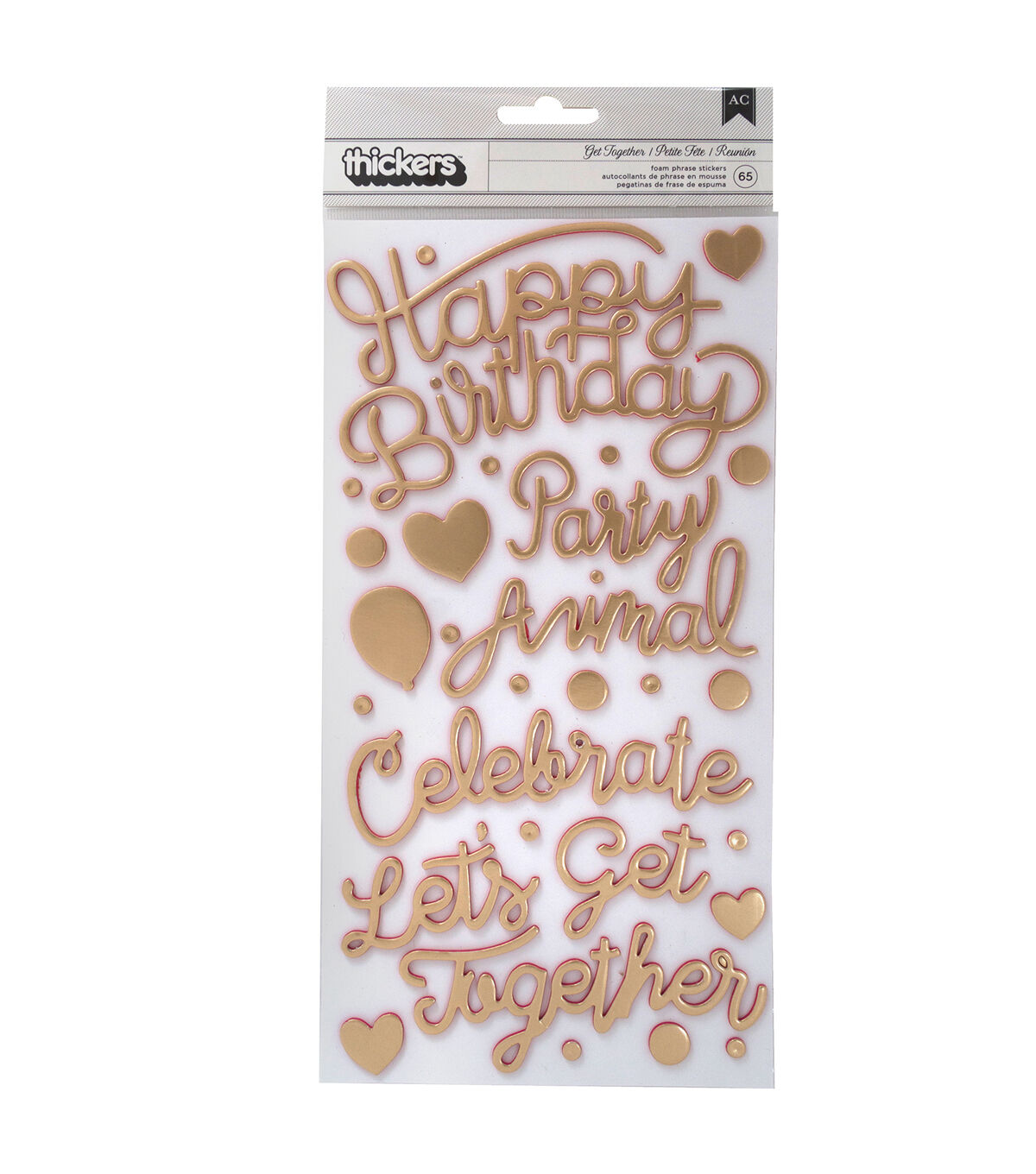 Add these bold titles to your scrapbook pages, cards, and gifts for some added dimension and color. This package includes over 60 Thickers phrases with a gold foil finish.