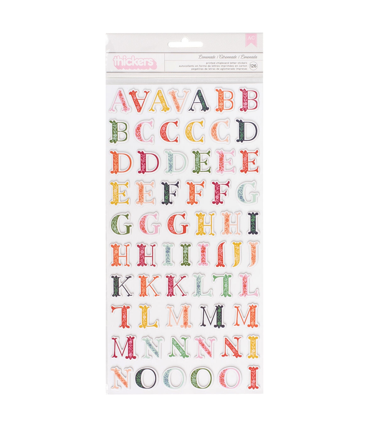 Give your pages the pick-me-up they deserve with these adorable Thickers! With letters, numbers, and punctuation marks, all in a cute font, these brightly colored Thickers are the perfect finishing touches to any project. This package includes 126 Thickers printed on chipboard.