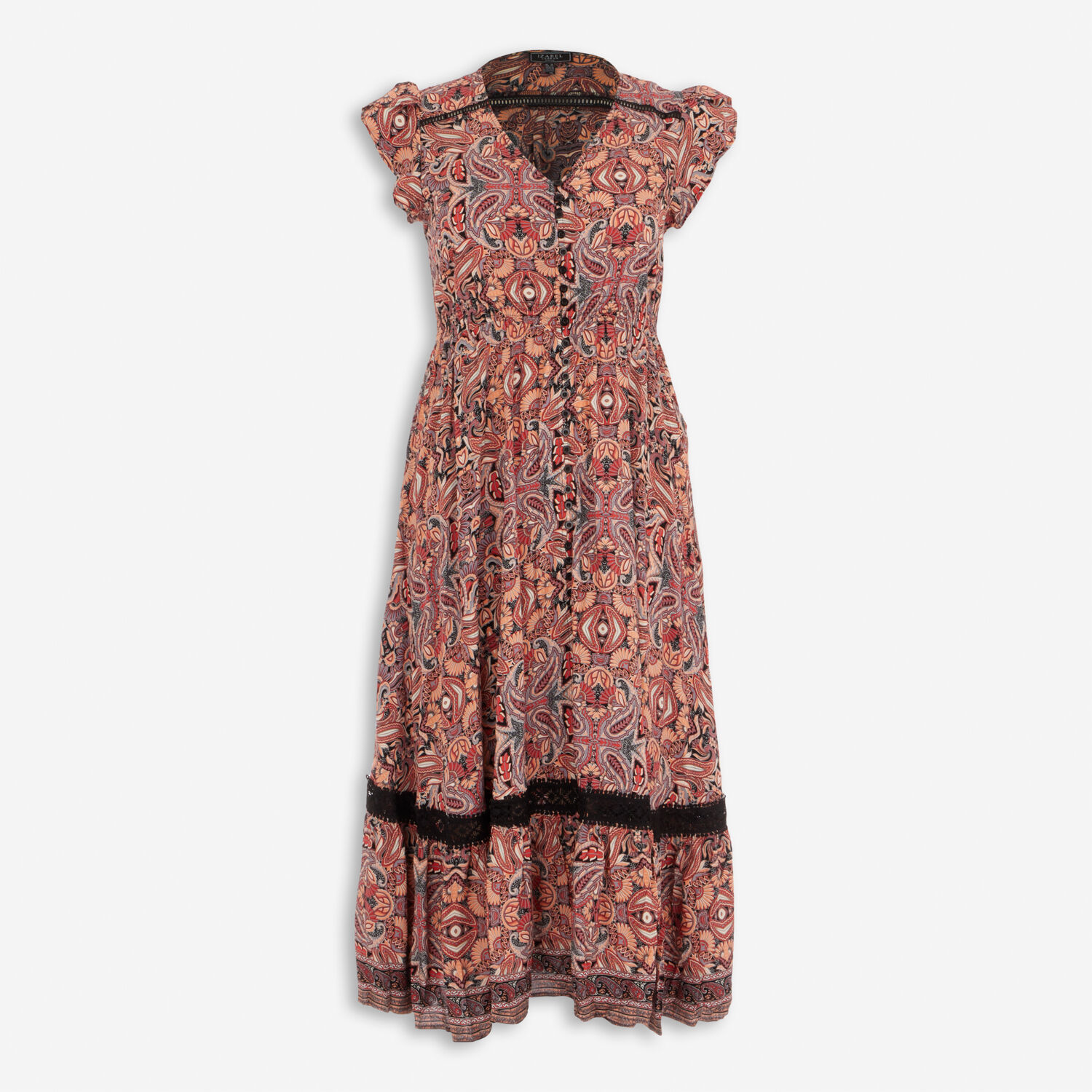 • Pink Patterned Midi Dress