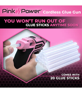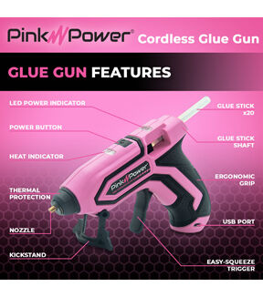 - WHAT's INCLUDED: (1) Pink Cordless glue gun, (20) Premium mini glue sticks, (1) USB fast charging cable, and a full three-year warranty.