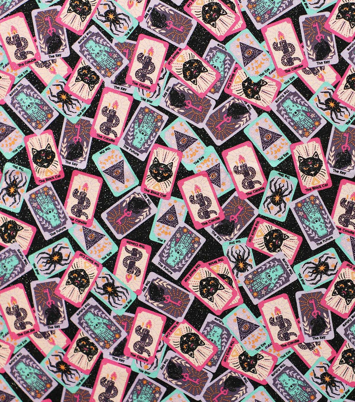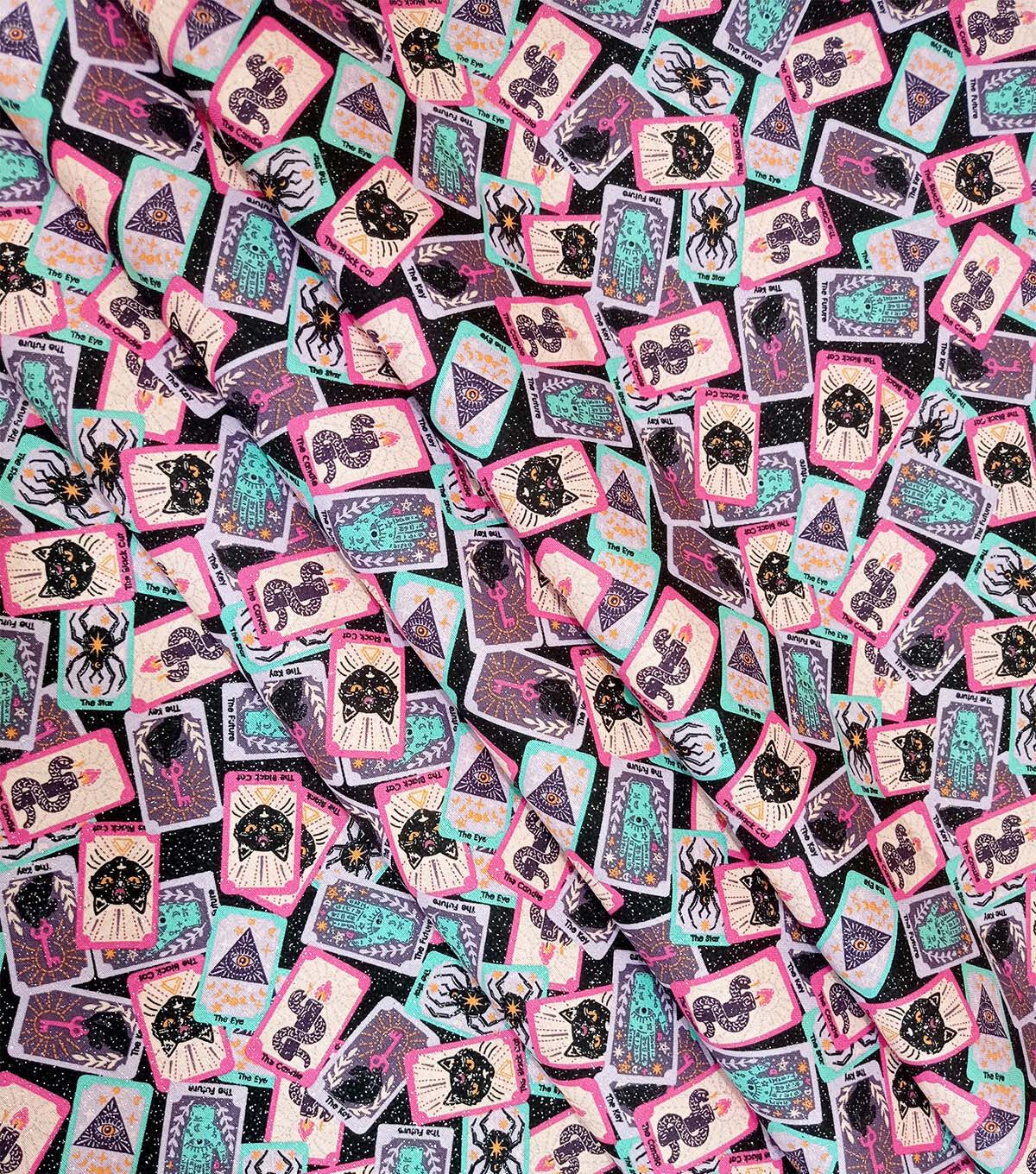Step into the world of divination and enchantment with our Pink & Purple Tarot Cards Glitter Cotton Fabric. This fabric is perfect for those who are drawn to the mystical and magical. The intricate design features tarot cards in shades of pink and purple with a touch of glitter to add some sparkle to your projects. Whether you're creating a tapestry, a dress, or a tote bag, this fabric will add a touch of enchantment to any project.