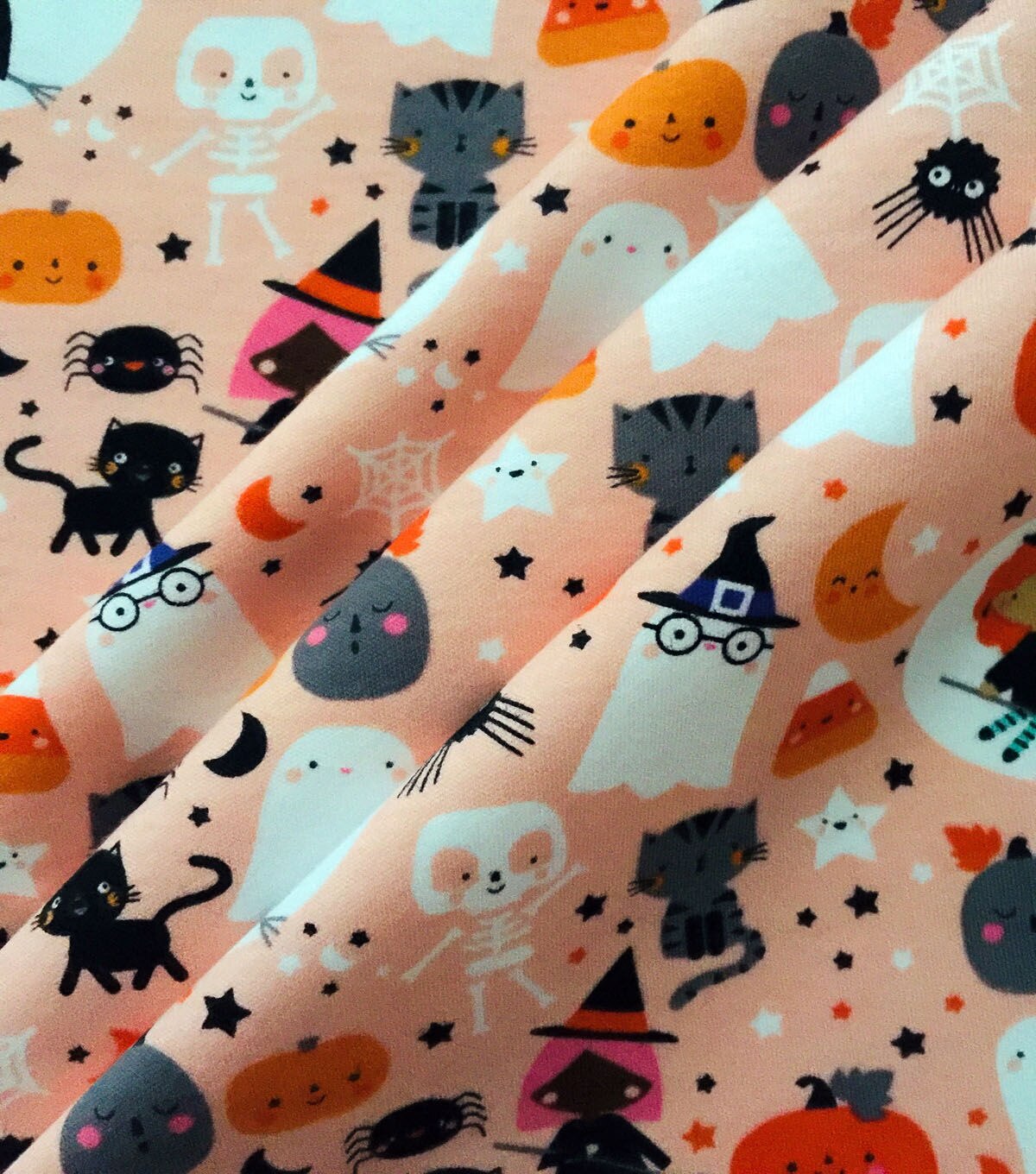 Give the kids a ghoulishly good time this season with our Halloween fabric. Combined with spandex, this cotton material has nice stretch for movement and flexibility, along with extra thickness for cooler nights of trick-or-treating. Choose between spiderwebs or monster mashing pals for designing apparel like pajamas and leggings. Whatever you make, the whole family is in for a treat.