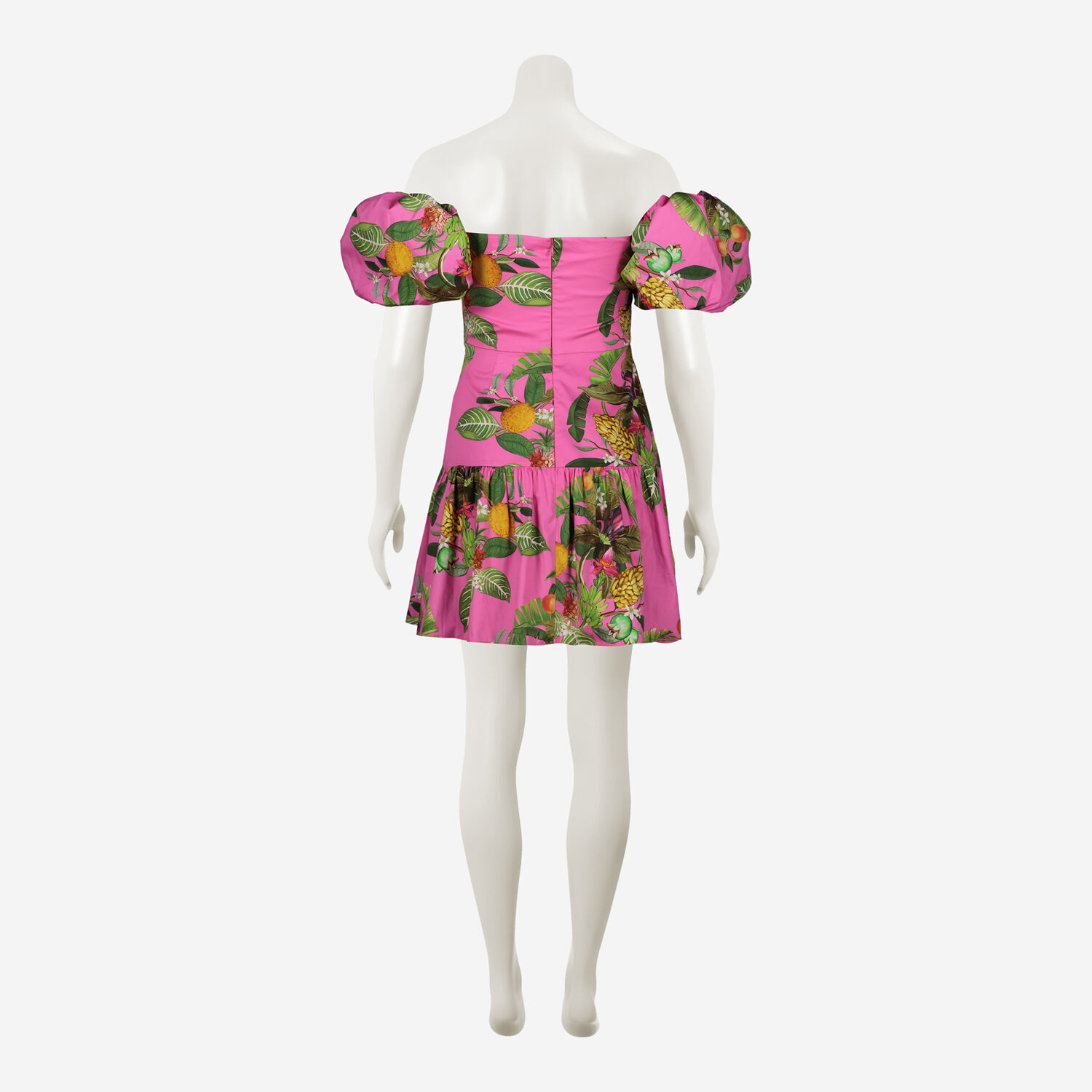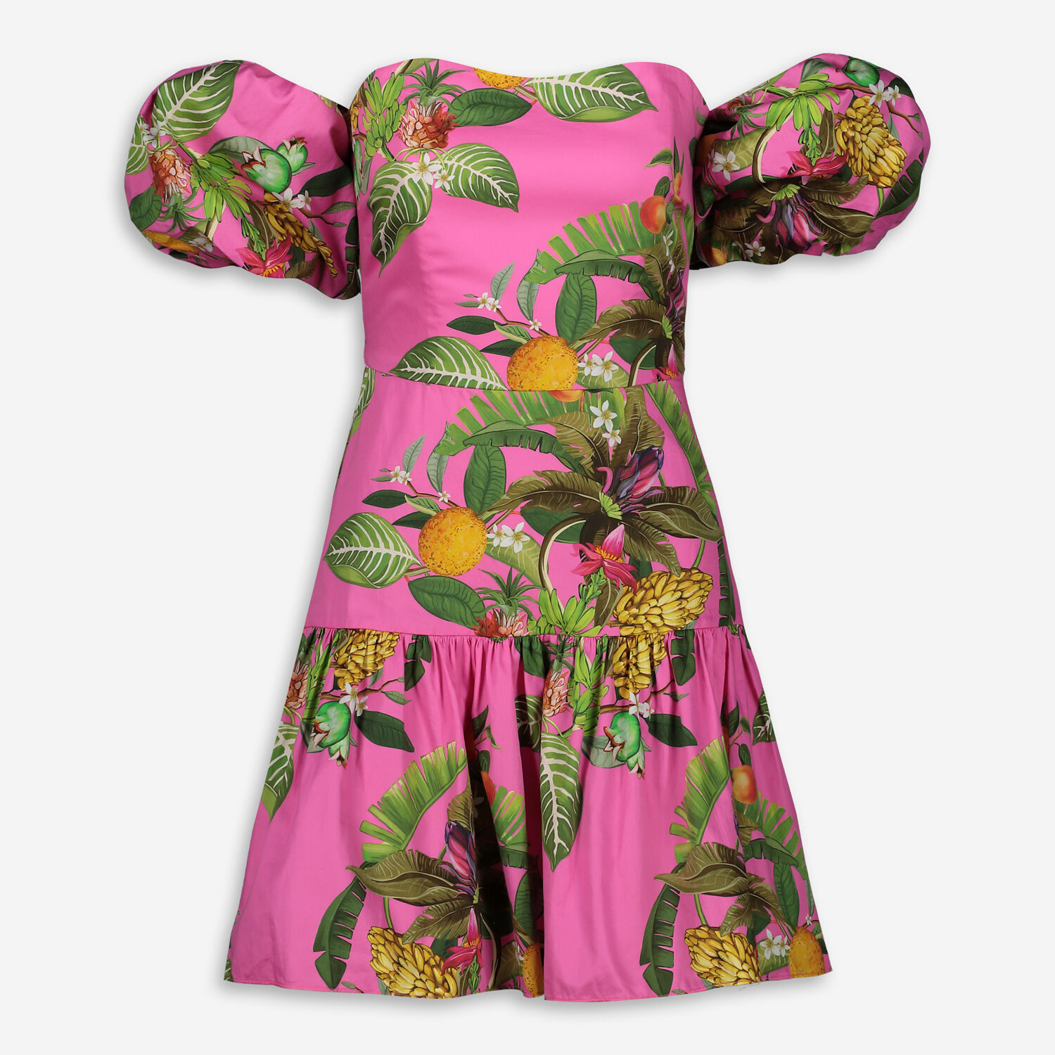 • Pink Tropical Puff Sleeve Dress