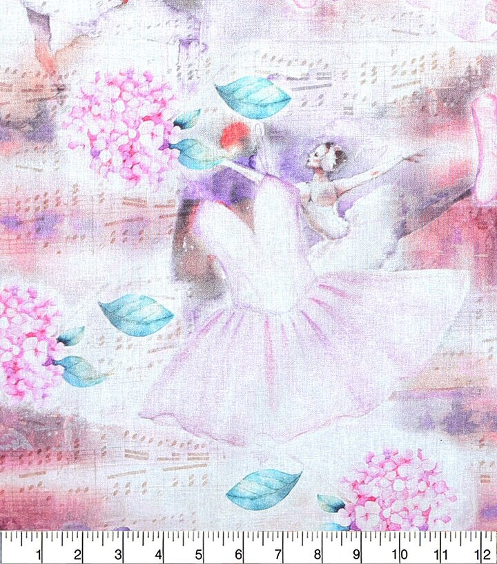 Pink Watercolor Ballerina Novelty Cotton Fabric