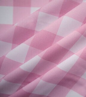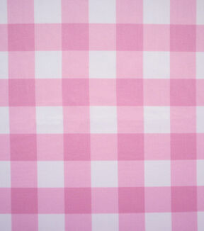 Pink & White Gingham Plaid Poplin Fabric