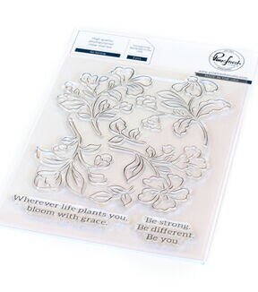 4 x 6 photopolymer clear stamp set designed by Inna Moreva. Made to coordinate with the Be Strong layering stencil set and Be Strong die. Available for purchase separately. Easily ink blend color into these whimsical blooms and leaves with the coordinating set of stencils, or color them with your favorite medium. They are perfect for using with liquid watercolor, colored pencils, markers and more. We've included the floral images all in one stamp image, so they easily align with both the layering stencil set and the 1 piece die. Finish your card off using one of the beautiful sentiments!