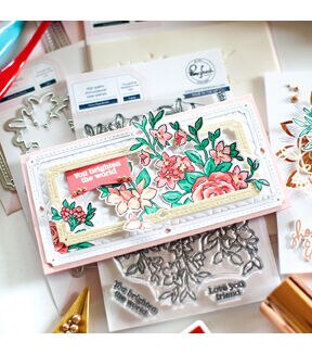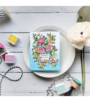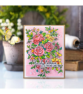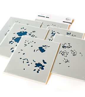 6 piece layering stencil set made to coordinate with the Fancy Rose Bunch stamp set and Fancy Rose Bunch die set. There is a separate stencil for each layer, with guidelines on each stencil for perfect alignment when using alone. When using the stencils with the stamped images you will forego the alignment guides, and instead align each layer to the stamped images. Use them without the stamped image for a soft, no-line coloring feel. Use the coordinating stamp to add more detail to the image by stamping with detail black, or heat embossing in your favorite powder. Imported.
