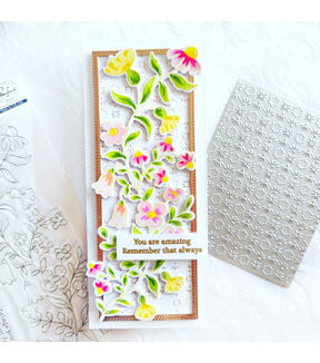 1 piece cover plate die designed by Inna Moreva. Add a subtle design to all your backgrounds with this on trend cover plate die! The Hexagon Tile background will look amazing peeking from behind all the different stamps, stencils, dies and hot foil products we offer. There is no cut line, which allows you to add this fun texture & design to any paper size you like! Cover plate die measures approximately 4.25 x 5.5 inches. Imported.