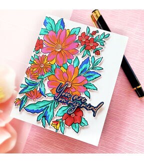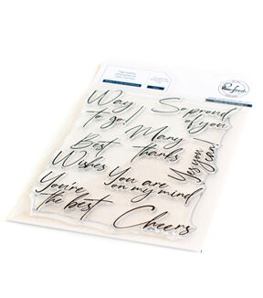 4 x 6 inch photopolymer clear stamp set designed by Kaitlin Sheaffer. Made to coordinate with the Modern Script Sentiments die. There is also a matching Modern Script Sentiments hot foil plate. Available for purchase separately. This stamp set includes 8 modern scripted sentiments to use for many different occasions! All sentiments have been merged into one stamp for easy alignment with the 1 piece die. Stamp them in Detail Black for a crisp, modern feel or heat emboss them in gold for some added elegance & shine. Each sentiment is part of one single stamp, so they easily align with the 1 piece die. Made in USA.