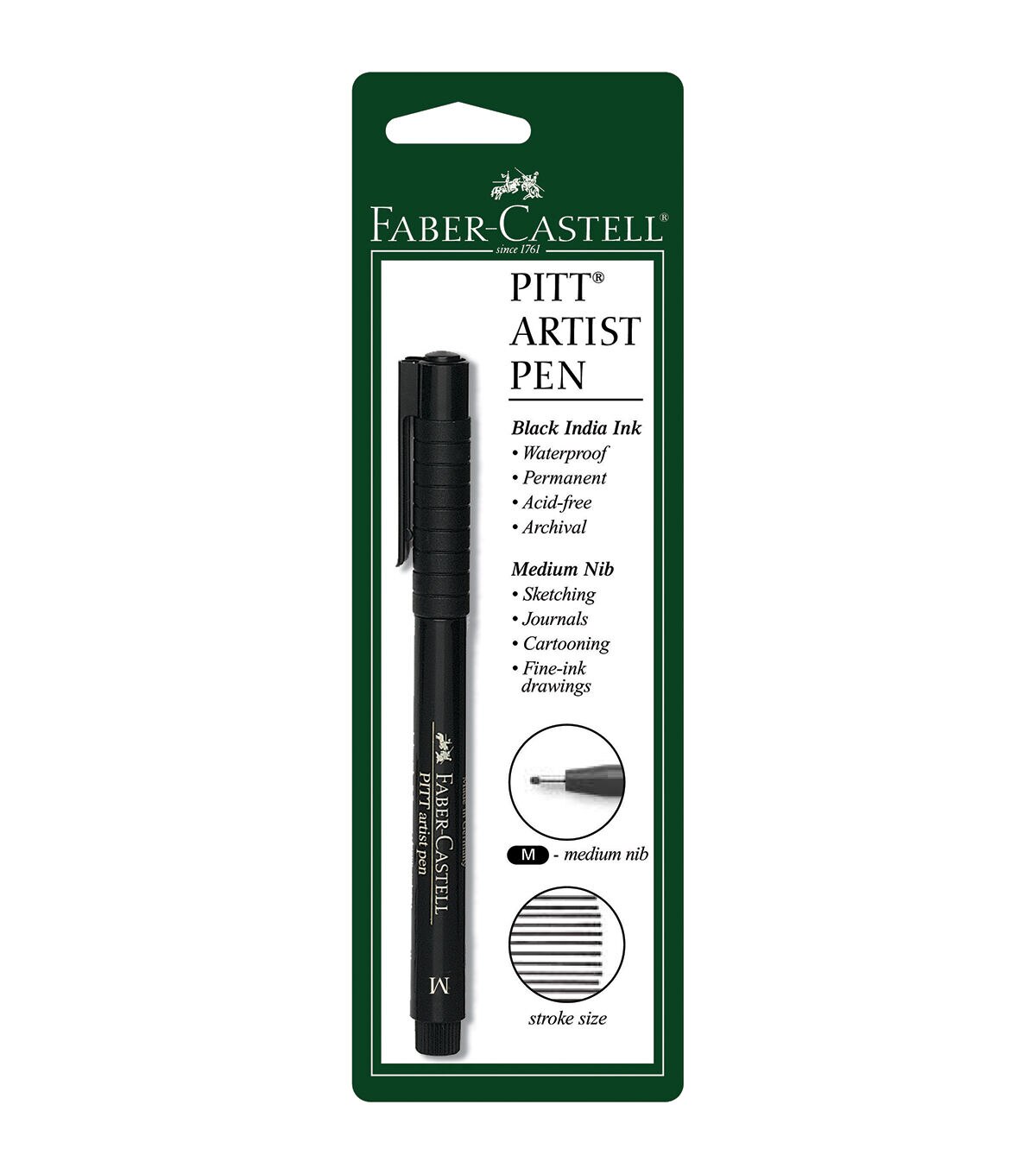 Faber-Castell has combined all the advantages of artist's inks with the benefits of a modern, easy-to-use disposable pen with the PITT artist pen. The pigmented and very lightfast drawing ink is ideal for sketches, drawings, layouts, fashion design, illustrations and more. The waterproof, smudge-proof and archival ink is also odorless, and with multiple varieties of nib widths available, this is the go-to pen of professional and amateur artists alike.